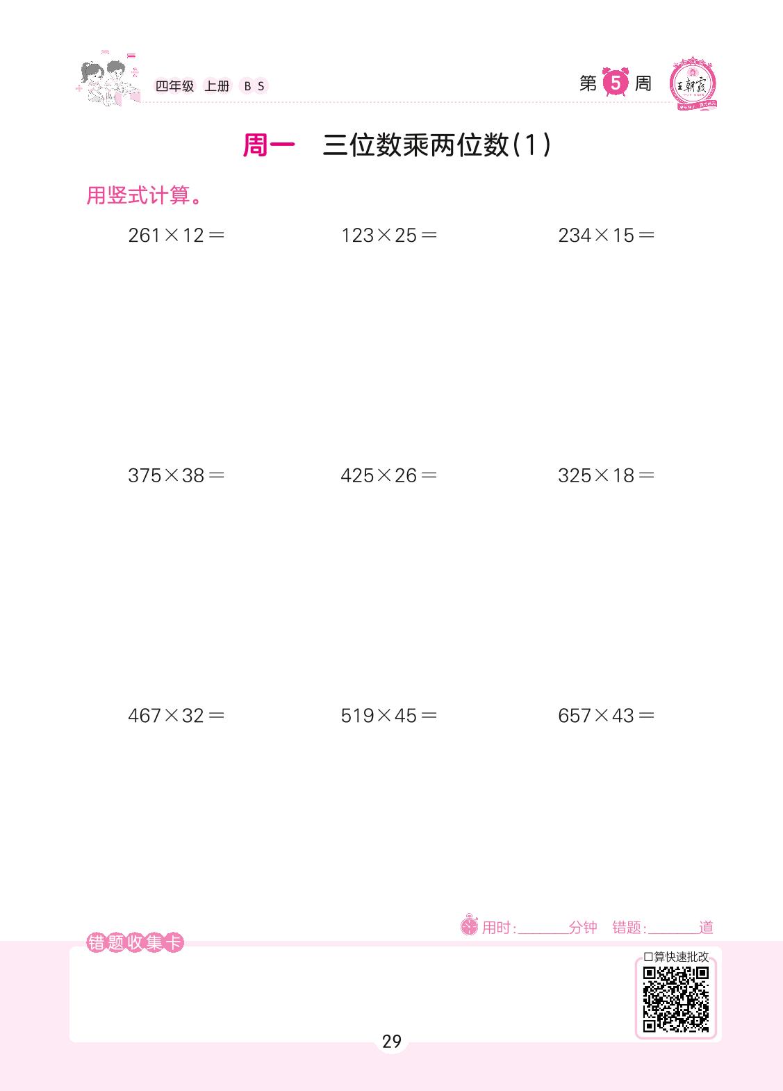 2022上册四年级数学北师版 第5周 周一