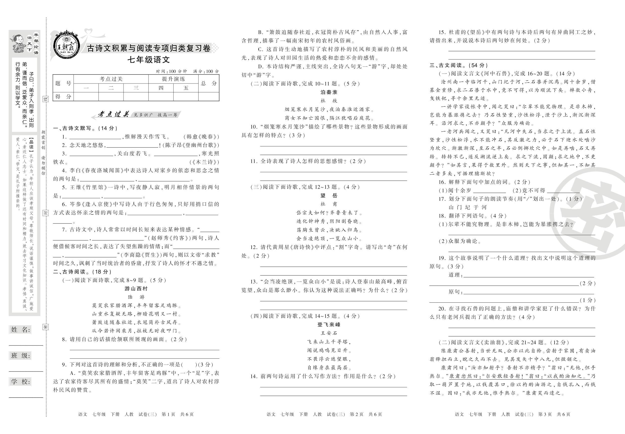 王朝霞期末专项卷七年级下册语文(人教版)_R21080250802【3】