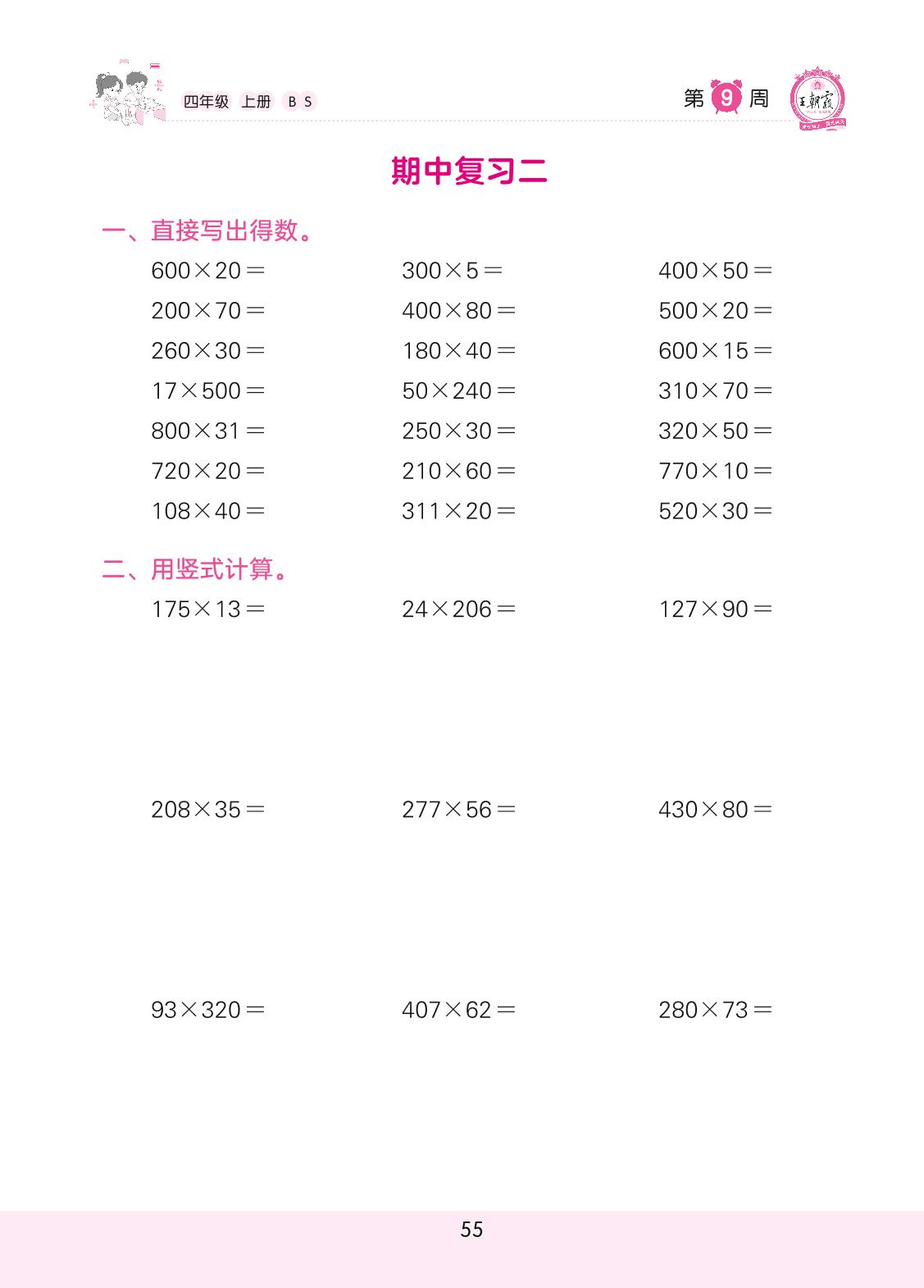 2022上册四年级数学北师版 第9周 期中复习二(计算专练)