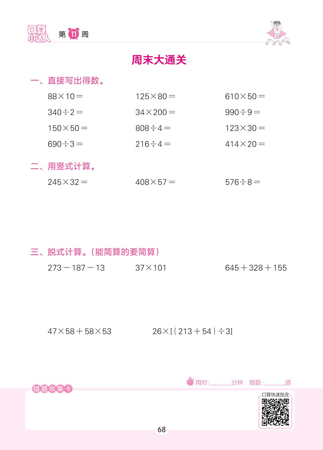 2022上册四年级数学北师版 第11周 周末大通关
