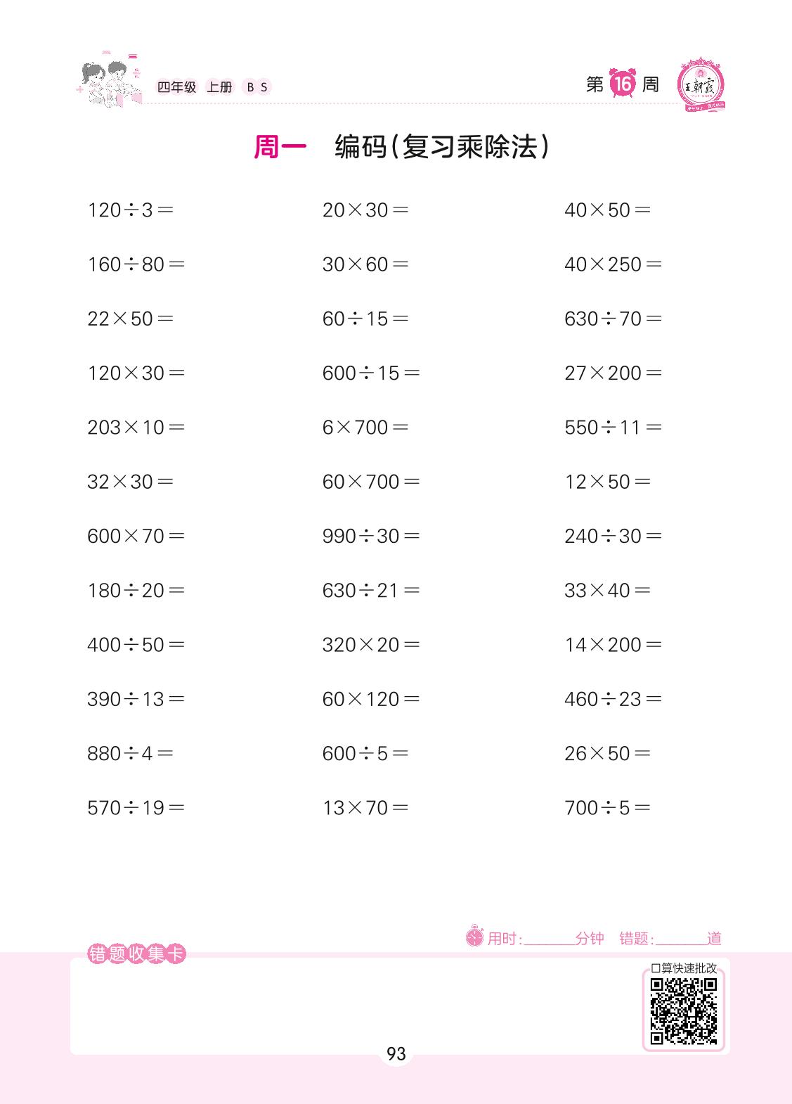 2022上册四年级数学北师版 第16周 周一