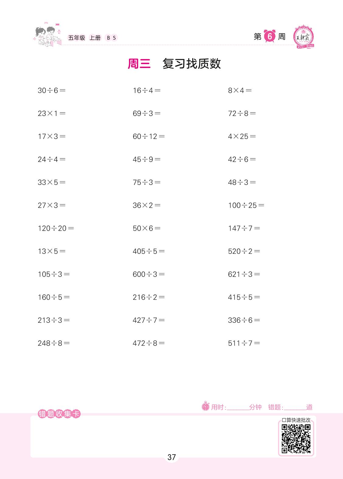 2022上册五年级数学北师版 第6周 周三