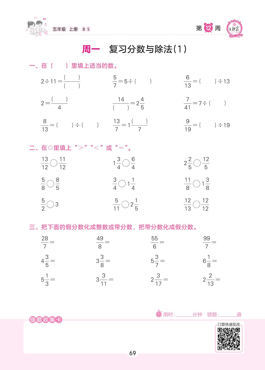 2022上册五年级数学北师版 第12周 周一