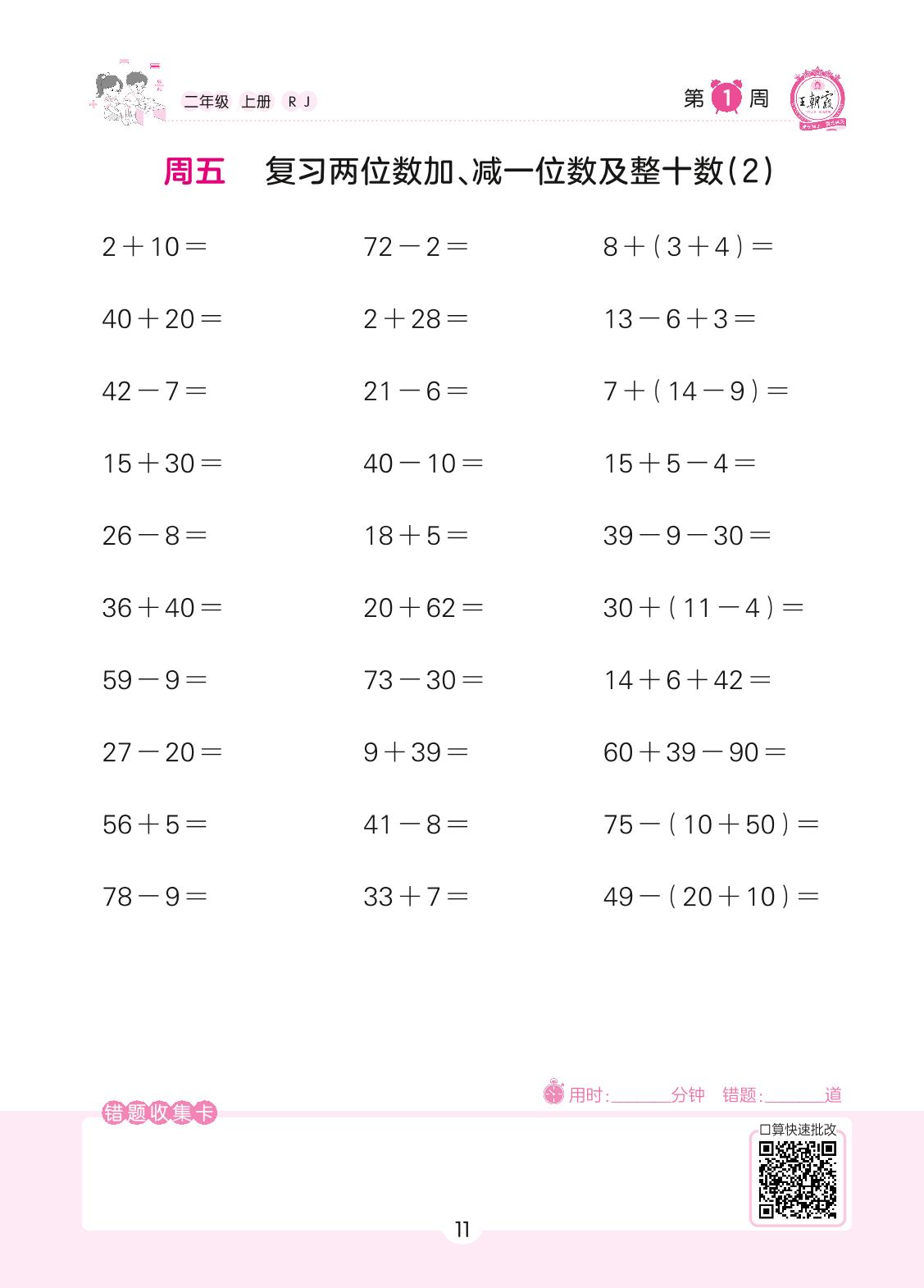 2022上册二年级数学人教版 第1周 周五