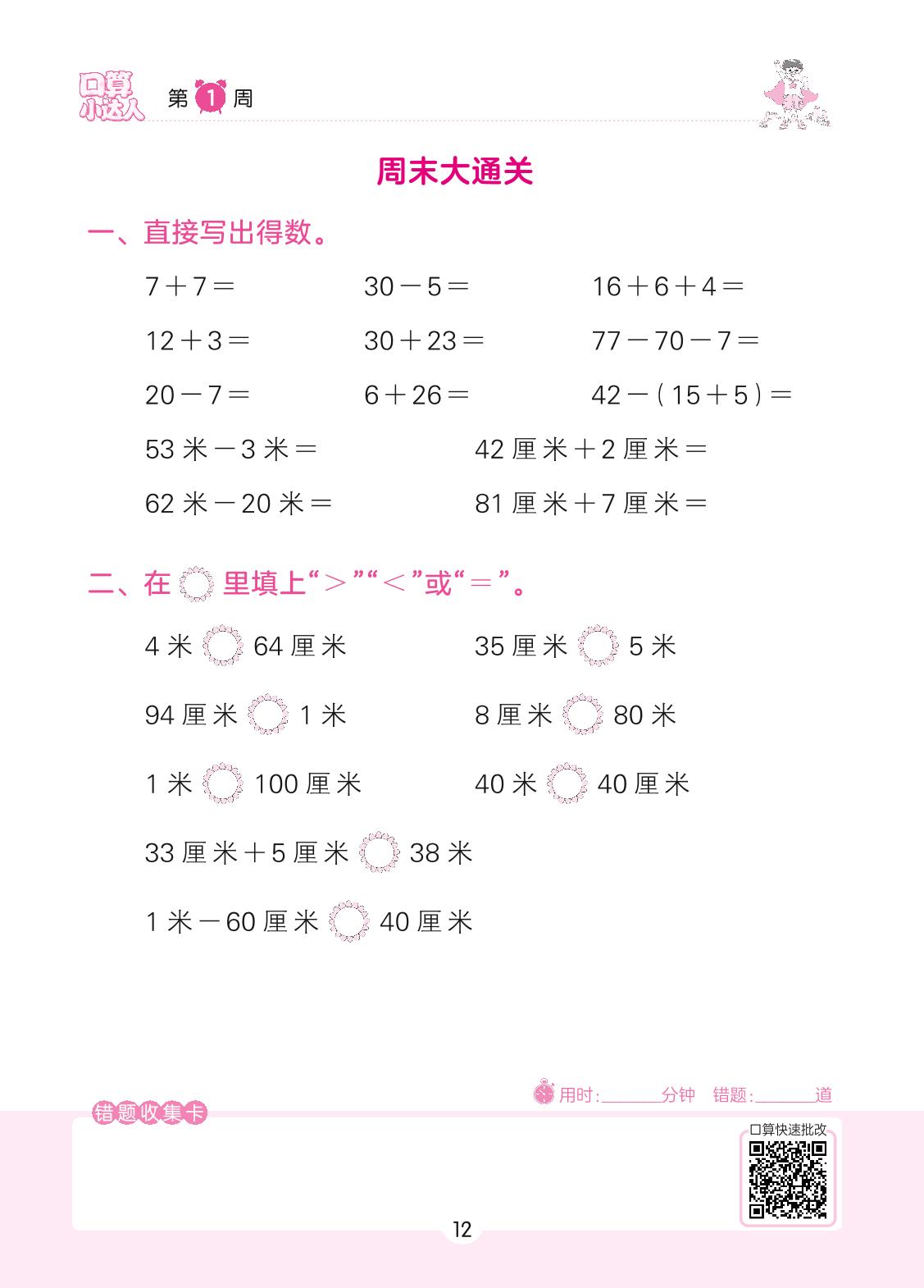 2022上册二年级数学人教版 第1周 周末大通关
