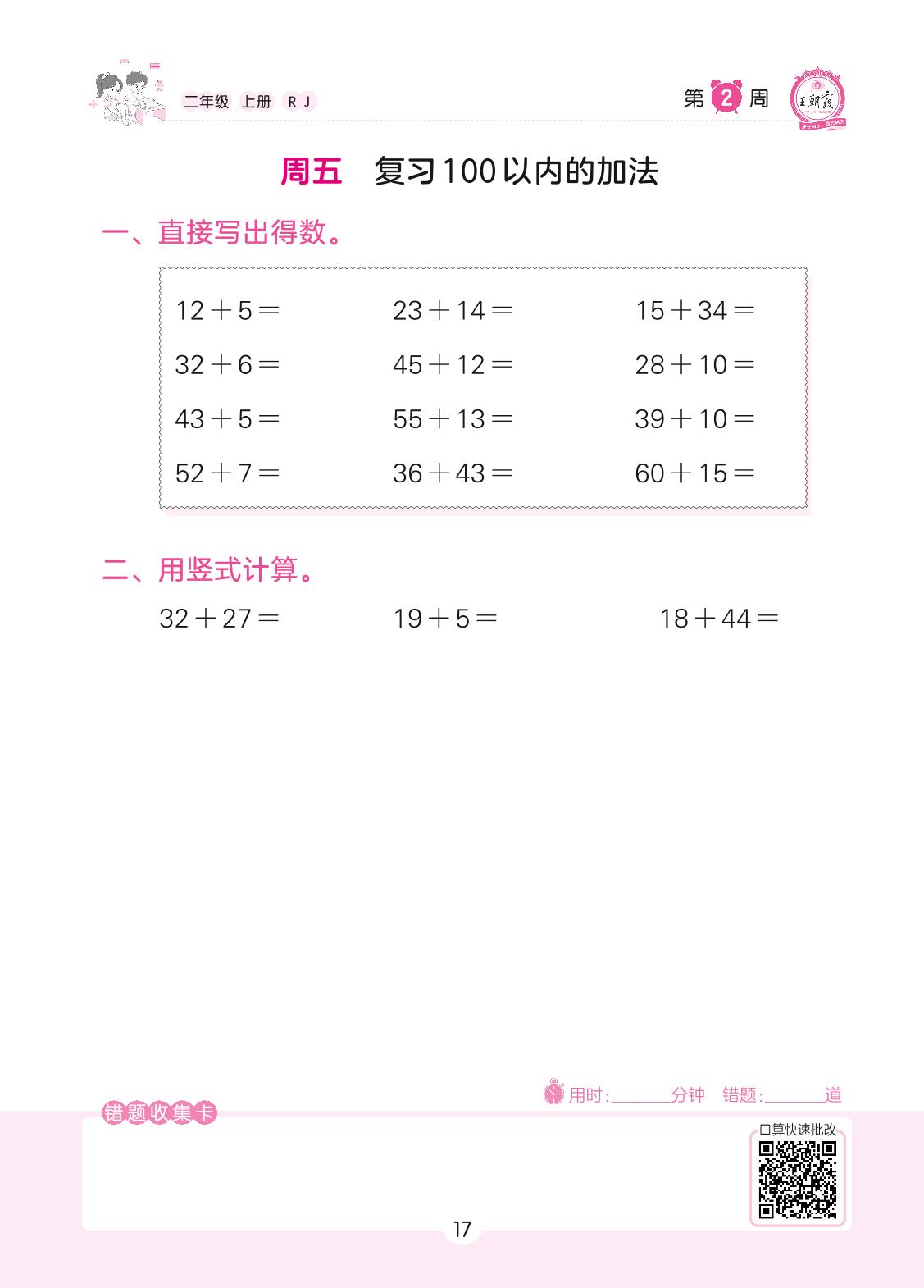 2022上册二年级数学人教版 第2周 周五