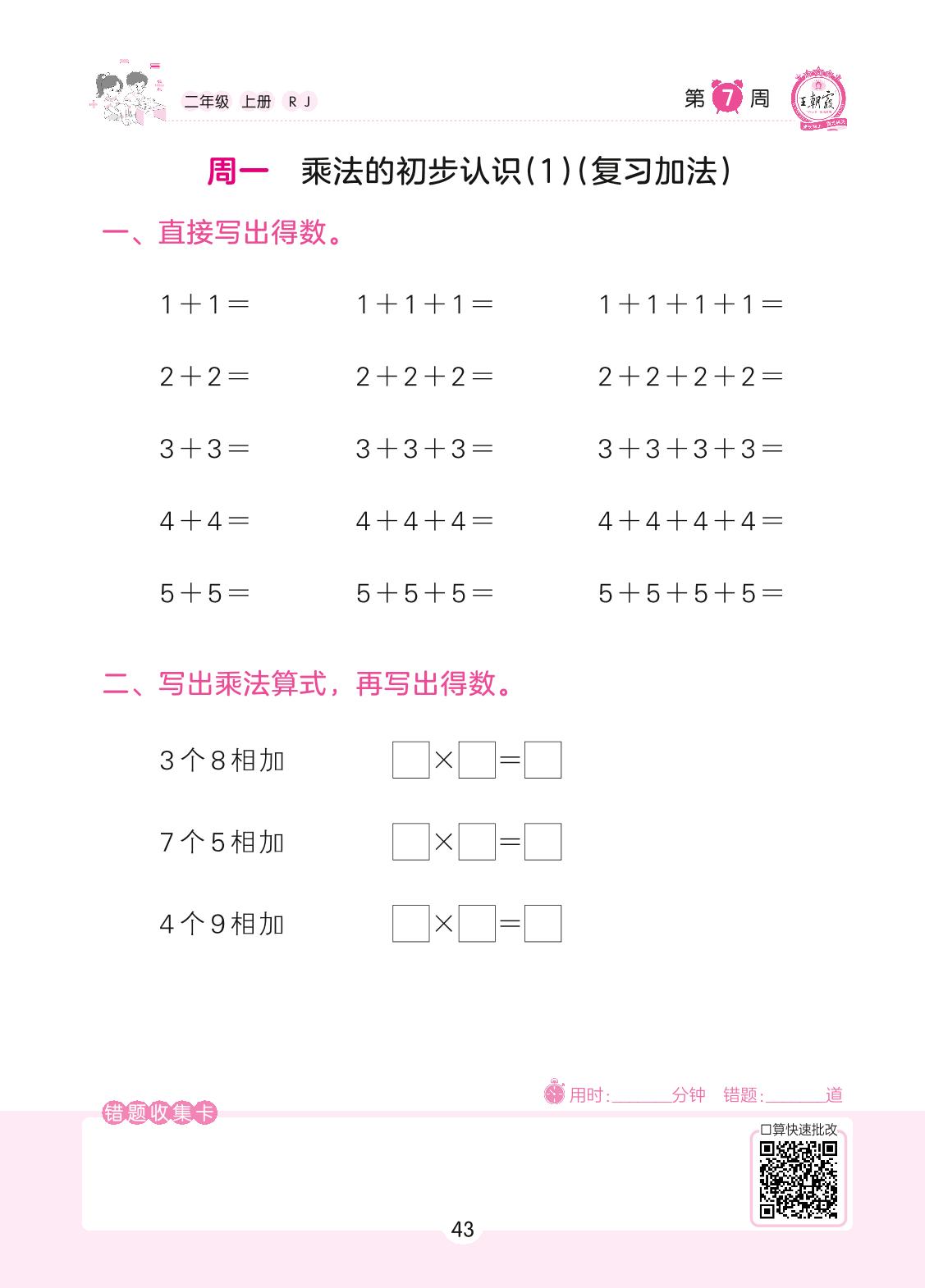 2022上册二年级数学人教版 第7周 周一