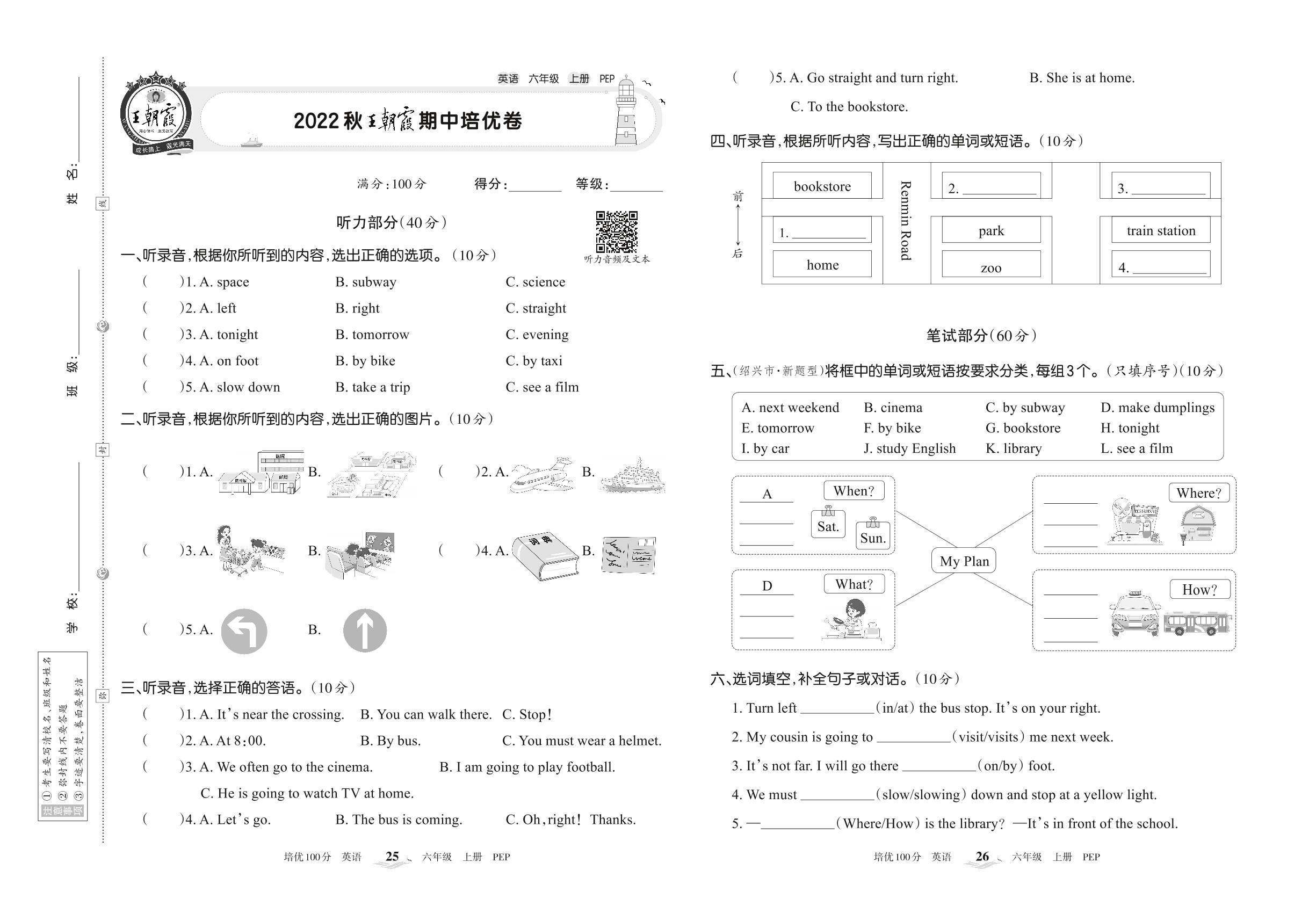 2022上册六年级英语人教PEP版 2022秋王朝霞期中培优卷