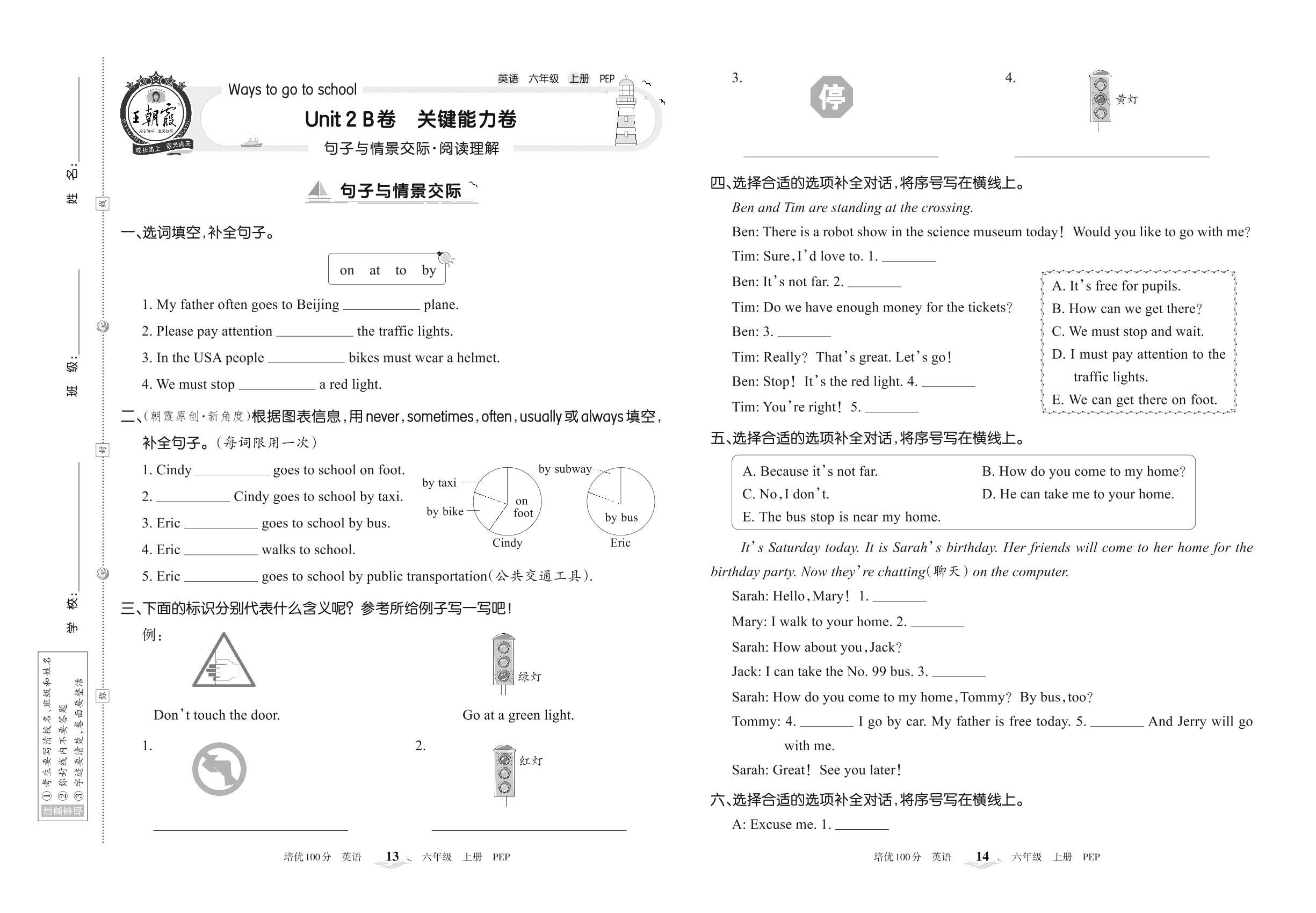 2022上册六年级英语人教PEP版 Unit 2 B卷 关键能力卷