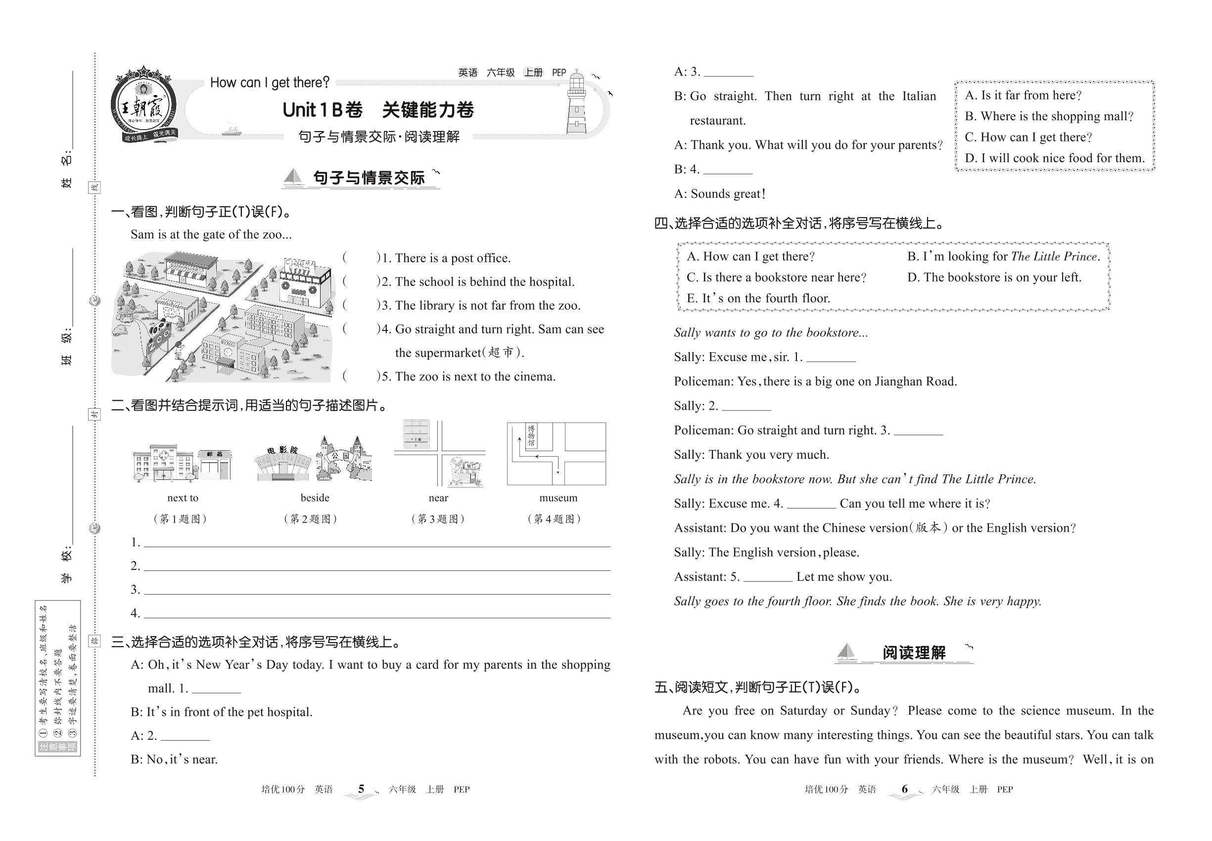 2022上册六年级英语人教PEP版 Unit 1 B卷 关键能力卷