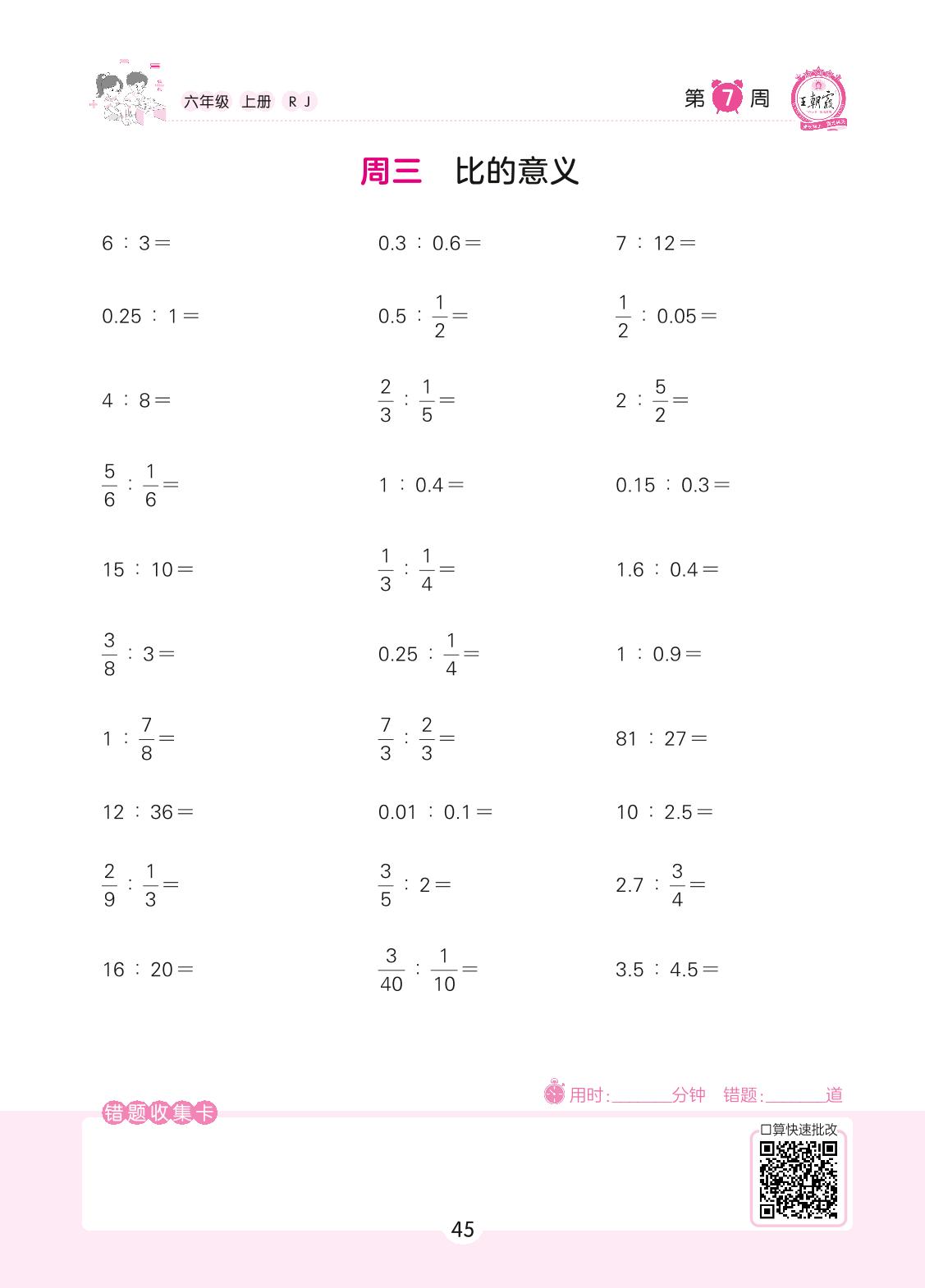 2022上册六年级数学人教版 第7周 周三