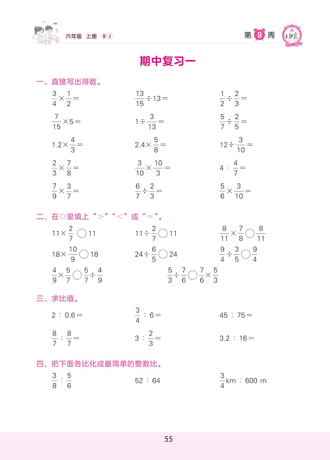2022上册六年级数学人教版 第9周 期中复习一(计算专练)