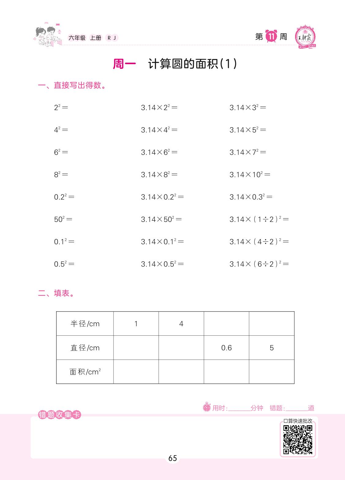 2022上册六年级数学人教版 第11周 周一