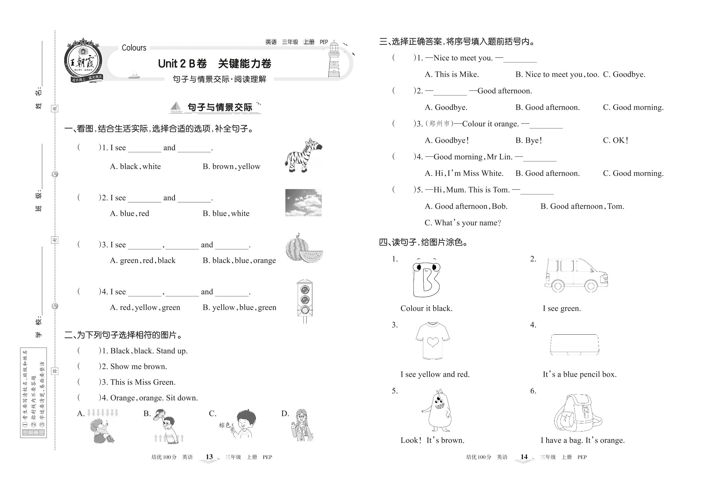 2022上册三年级英语人教PEP版 Unit 2 B卷 关键能力卷