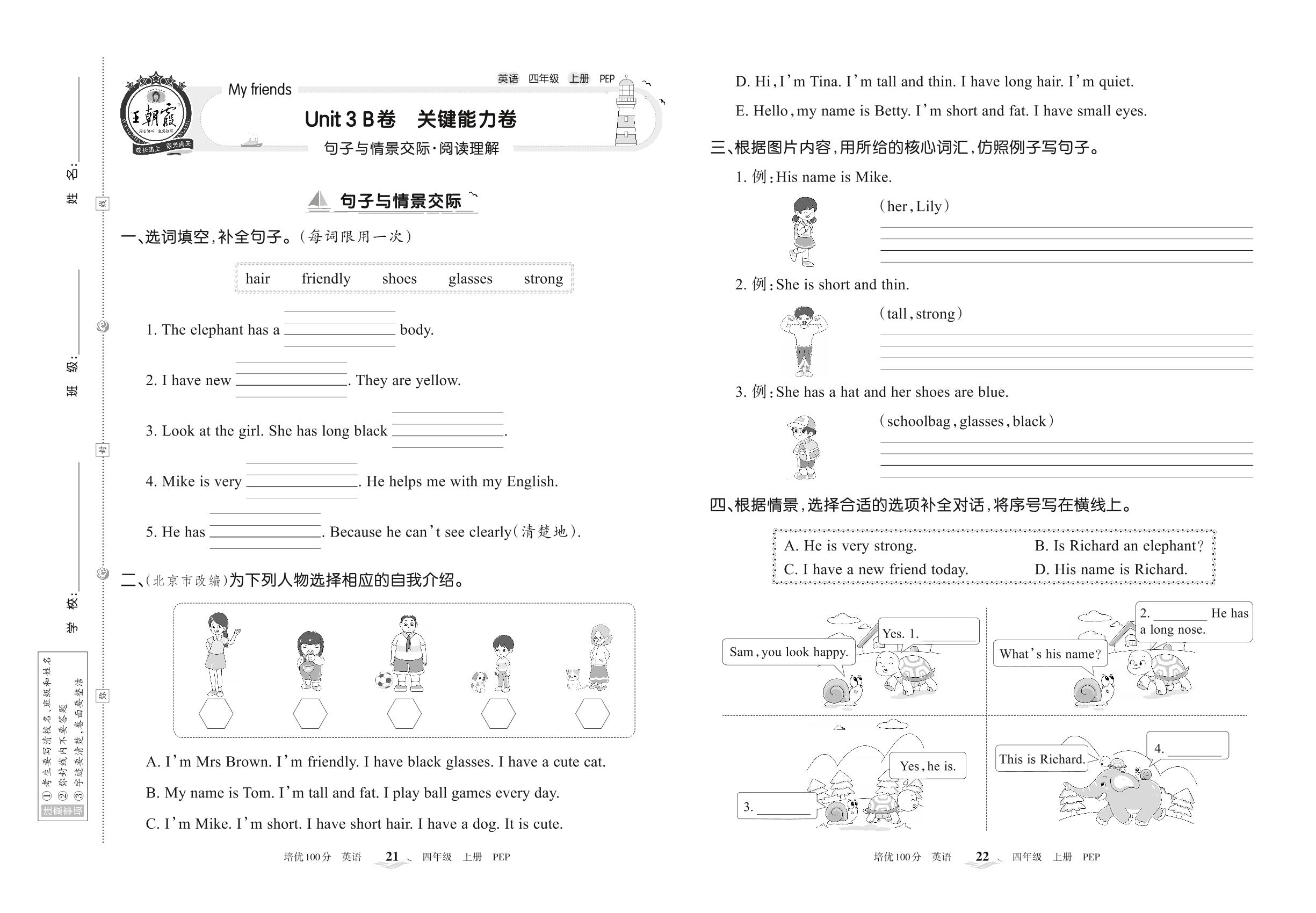 2022上册四年级英语人教PEP版 Unit 3 B卷 关键能力卷