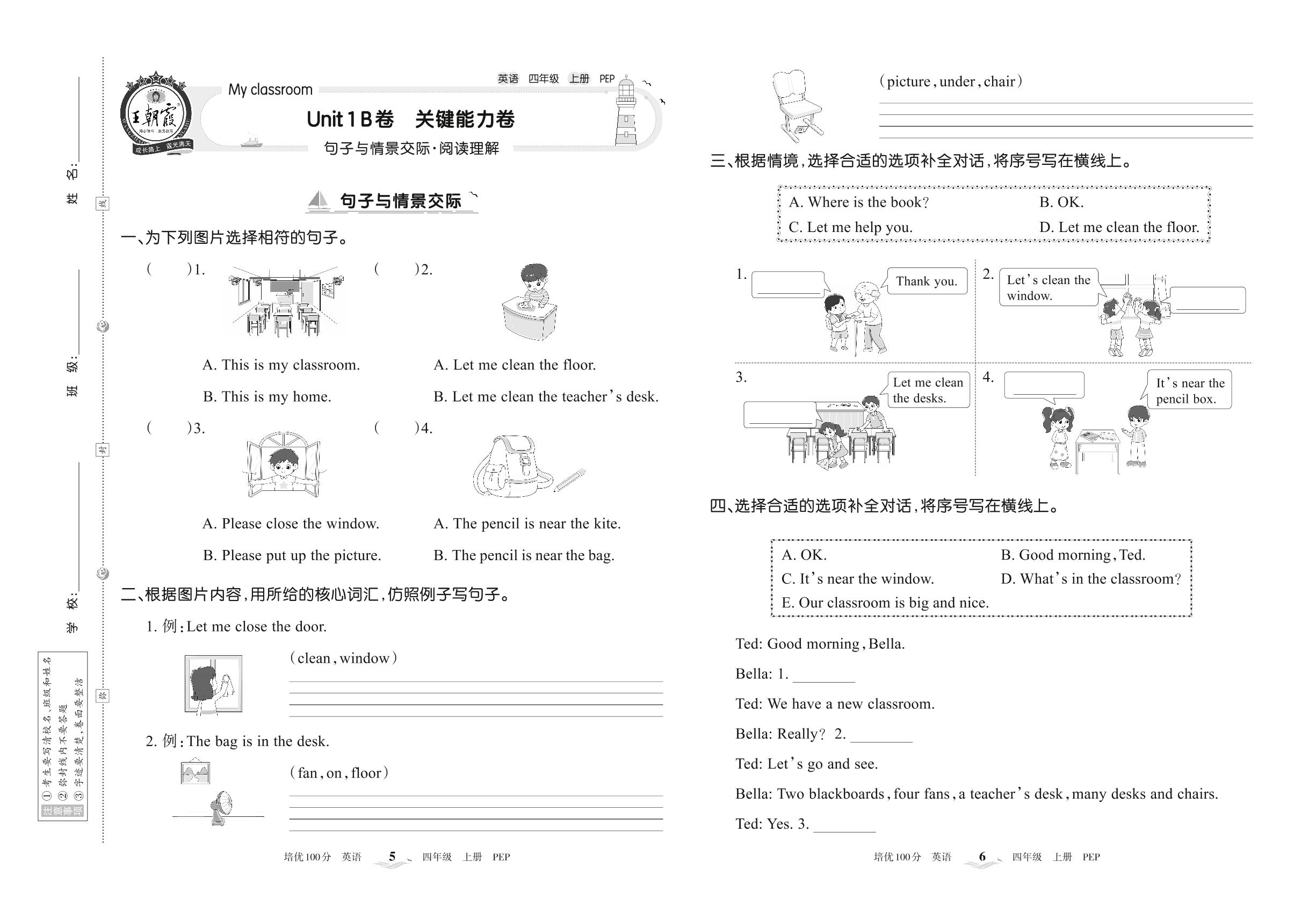 2022上册四年级英语人教PEP版 Unit 1 B卷 关键能力卷