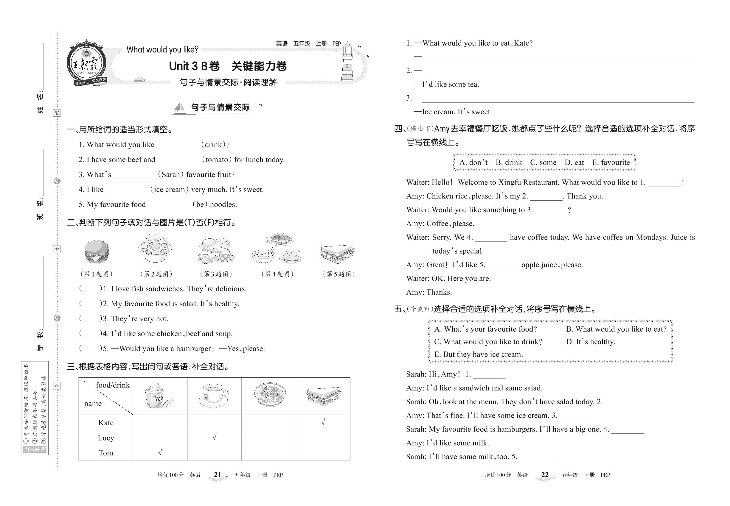 2022上册五年级英语人教PEP版 Unit 3 B卷 关键能力卷