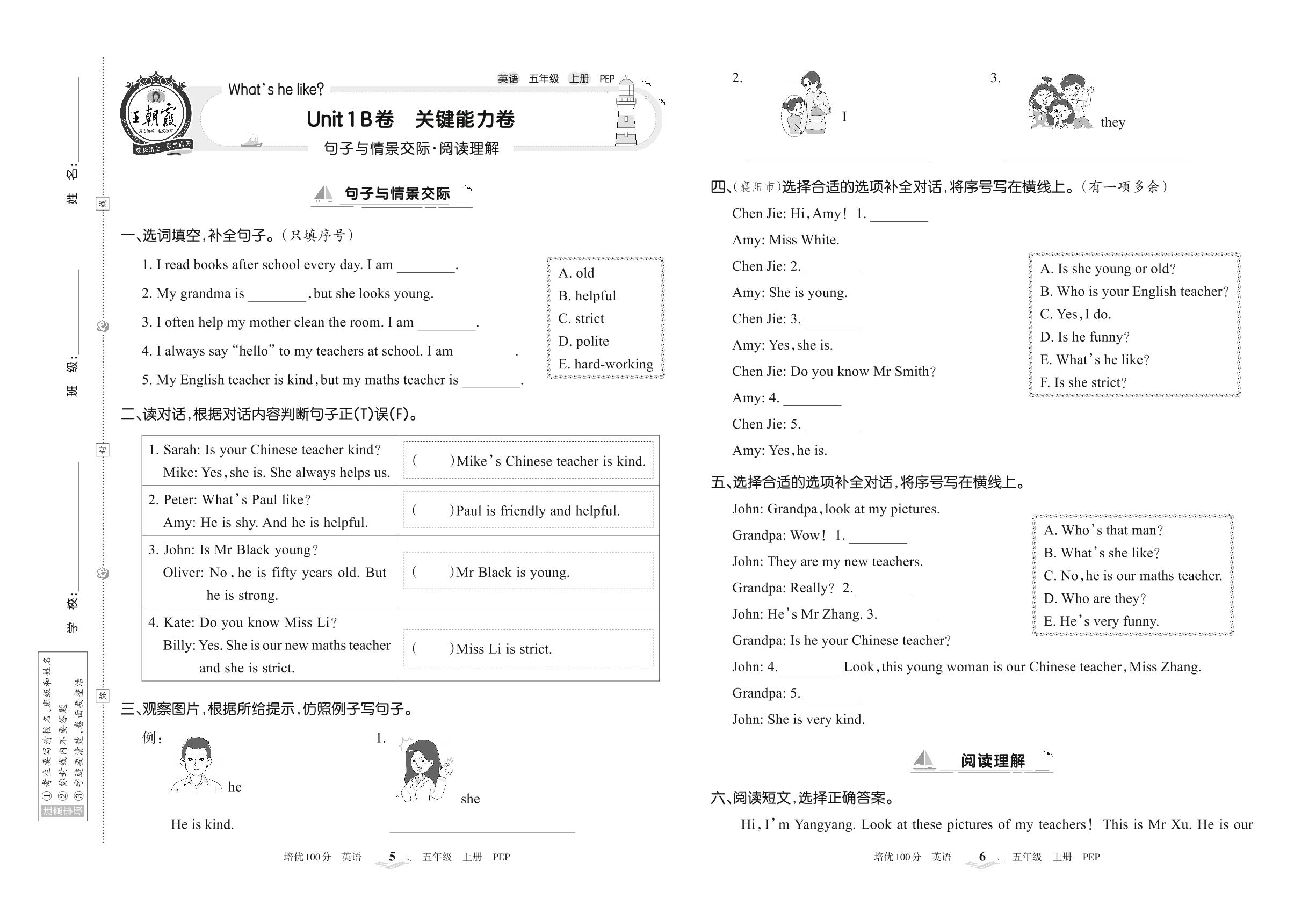 2022上册五年级英语人教PEP版 Unit 1 B卷 关键能力卷