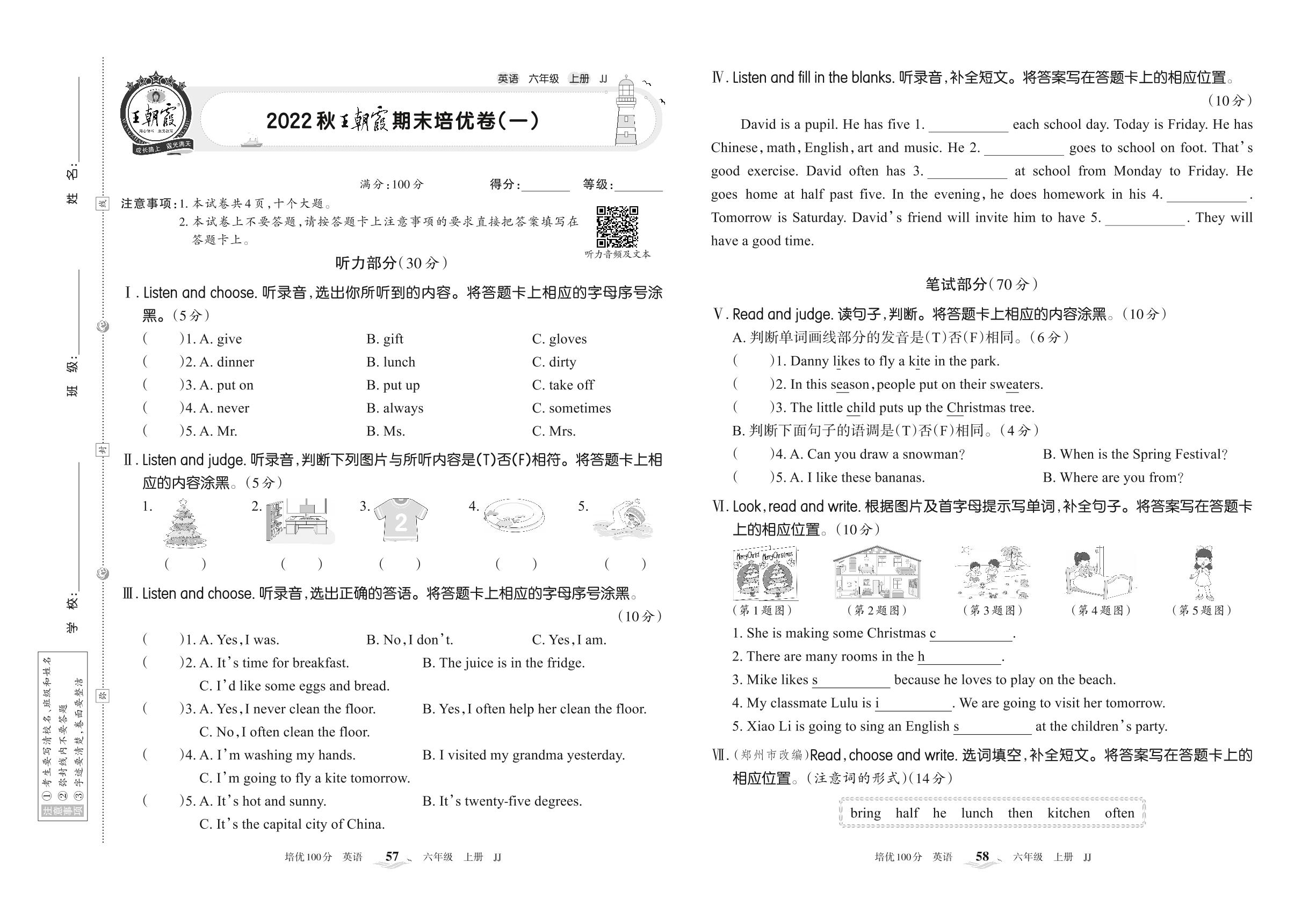 2022上册六年级英语冀教版 2022秋王朝霞期末培优卷(一)