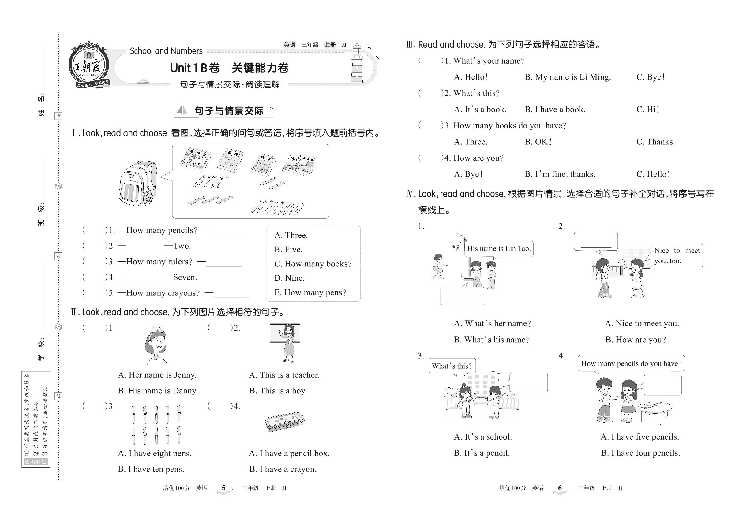 2022上册三年级英语冀教版 Unit 1 B卷 关键能力卷
