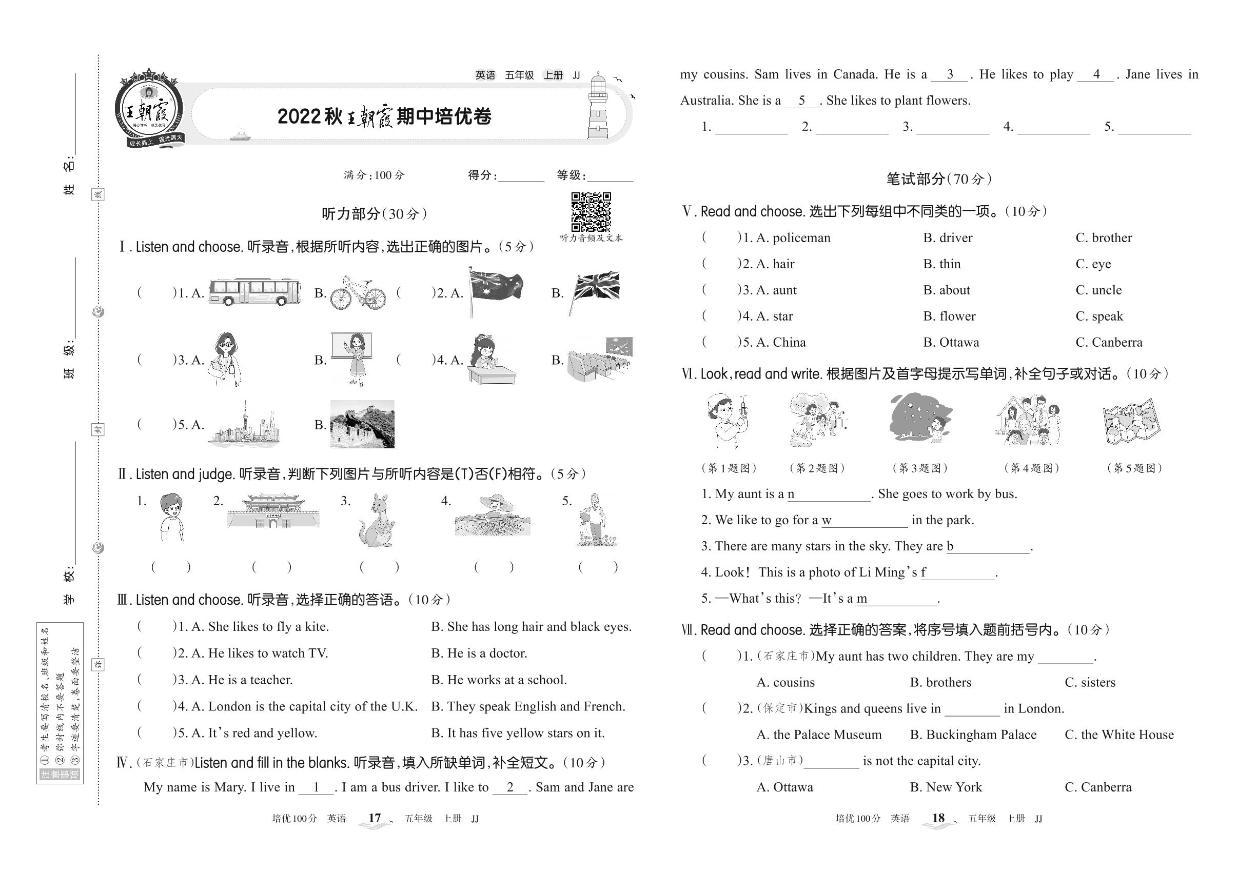 2022上册五年级英语冀教版 2022秋王朝霞期中培优卷