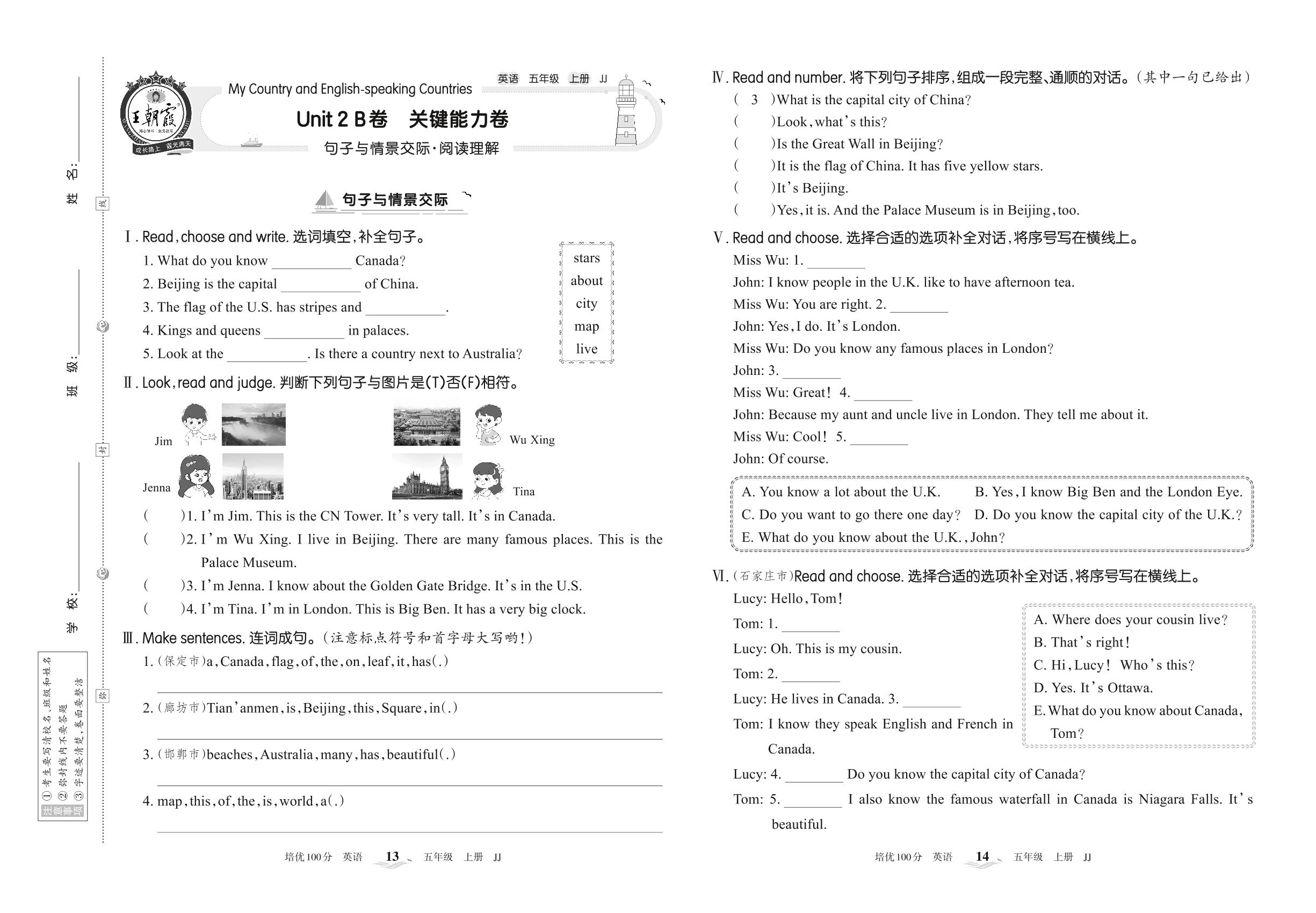 2022上册五年级英语冀教版 Unit 2 B卷 关键能力卷
