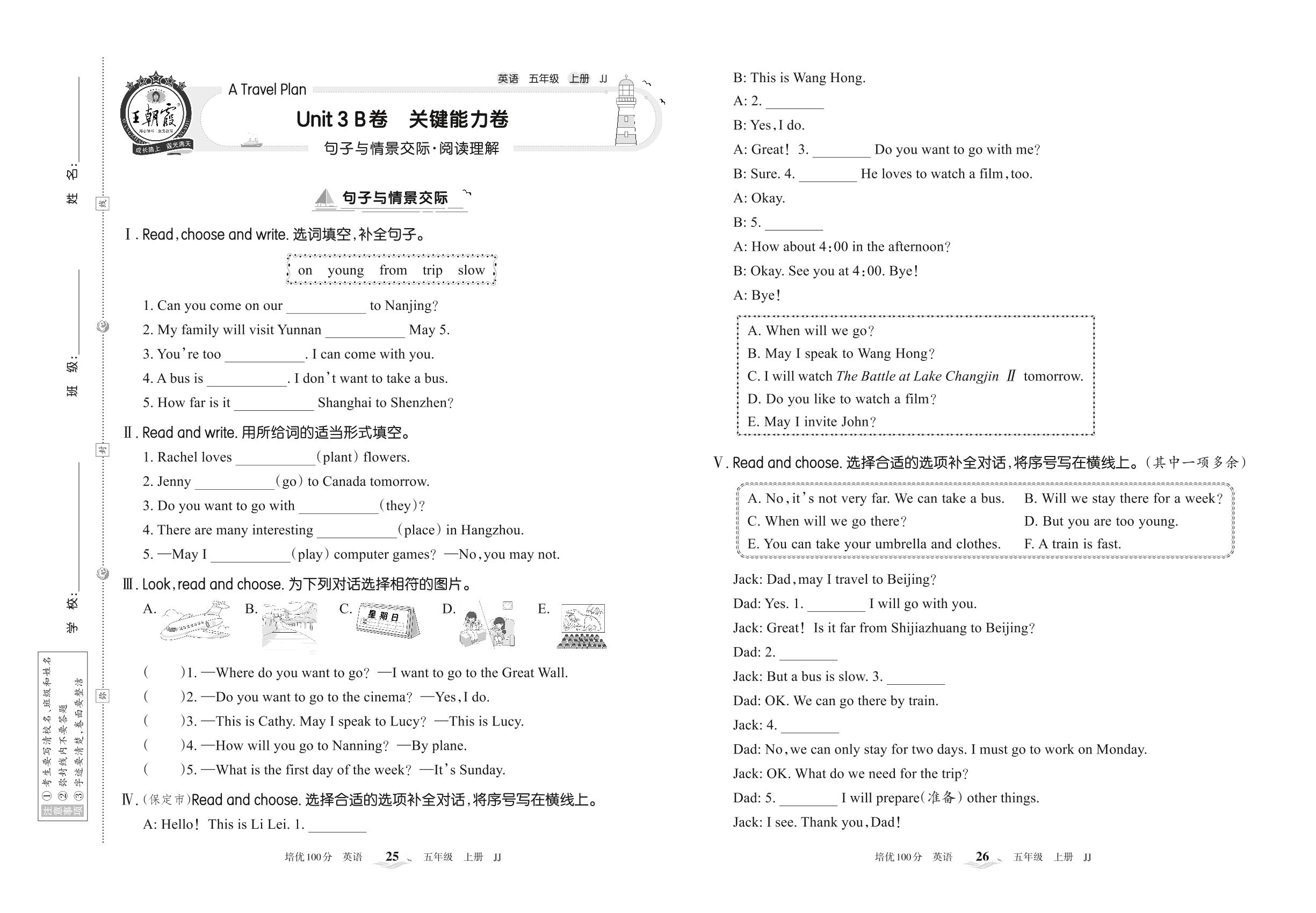 2022上册五年级英语冀教版 Unit 3 B卷 关键能力卷