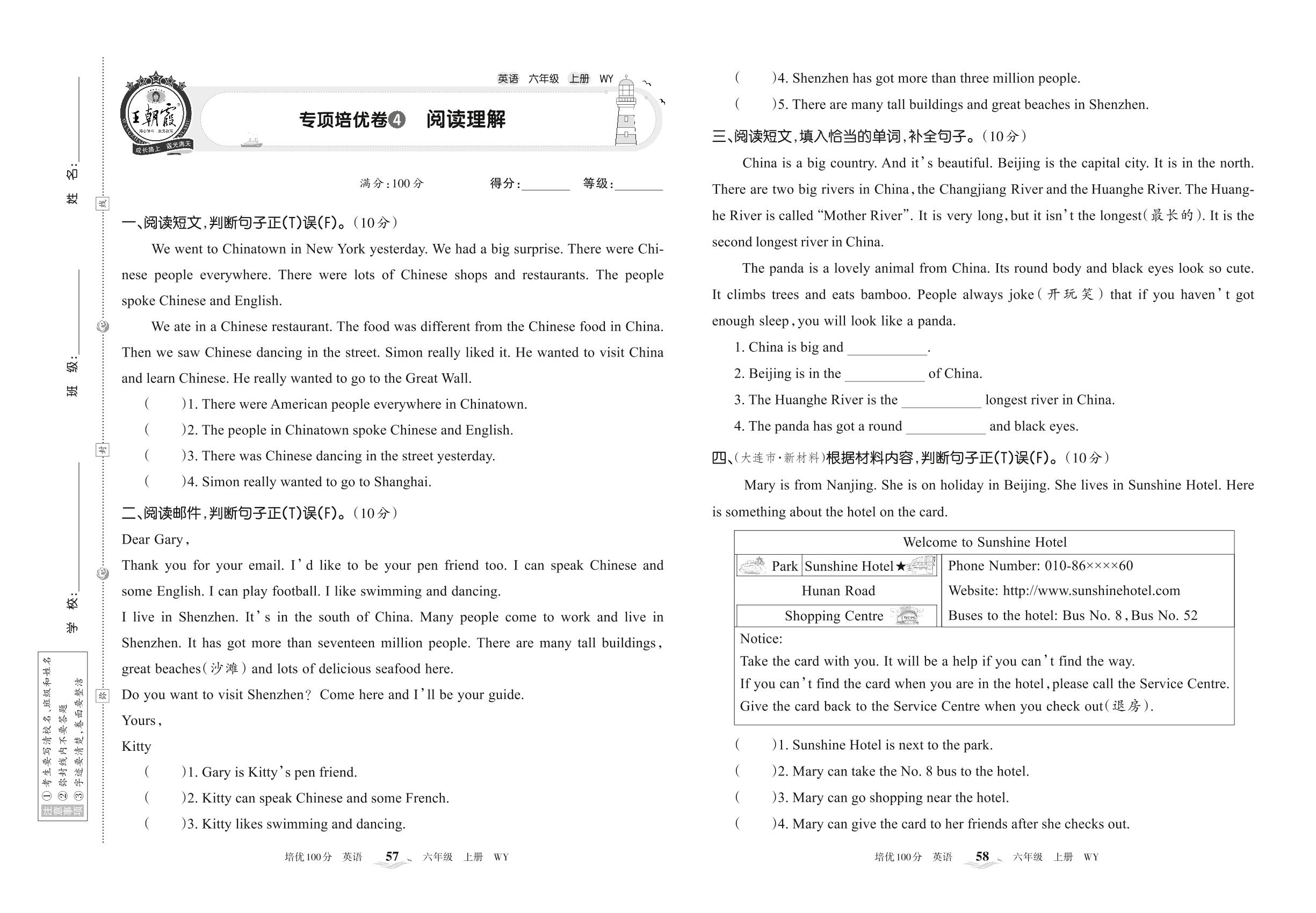 2022上册六年级英语外研版 专项培优卷4 阅读理解