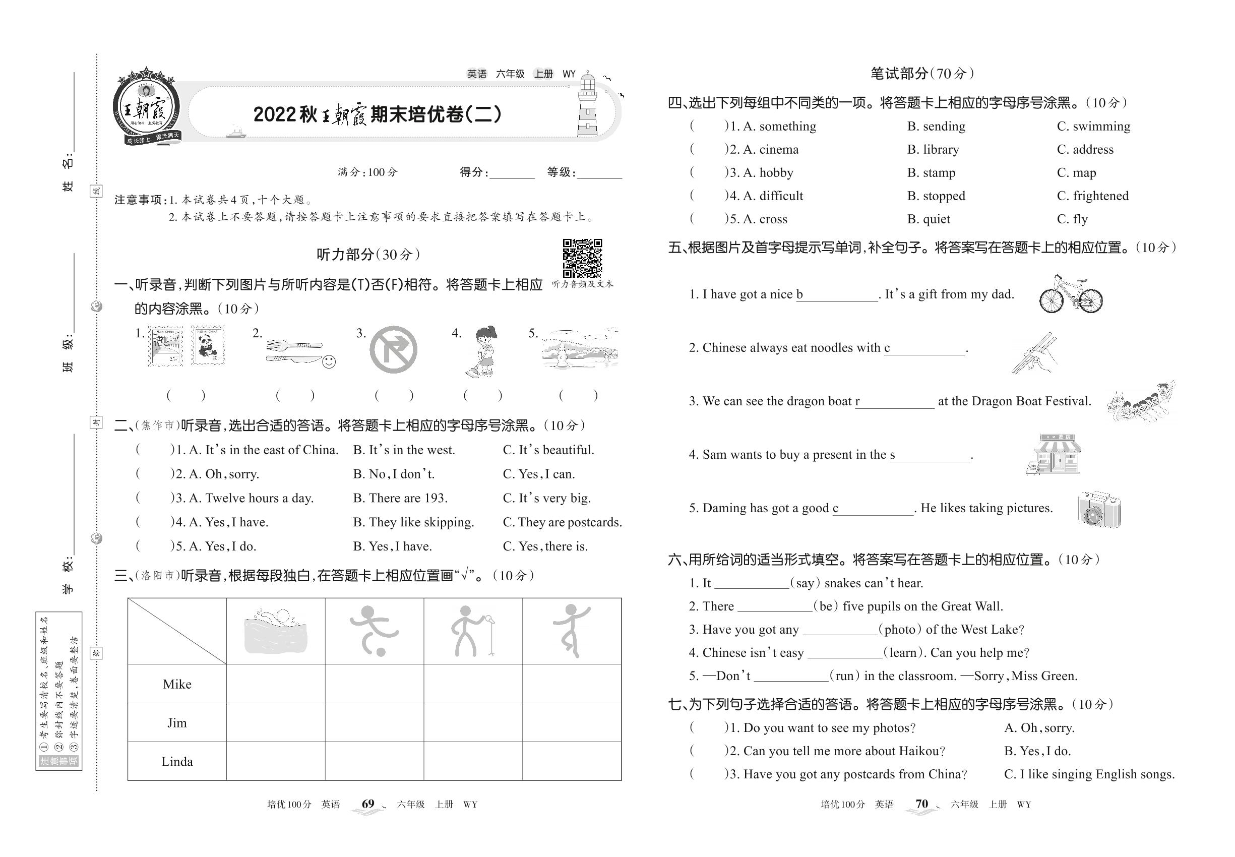 2022上册六年级英语外研版 2022秋王朝霞期末培优卷(二)