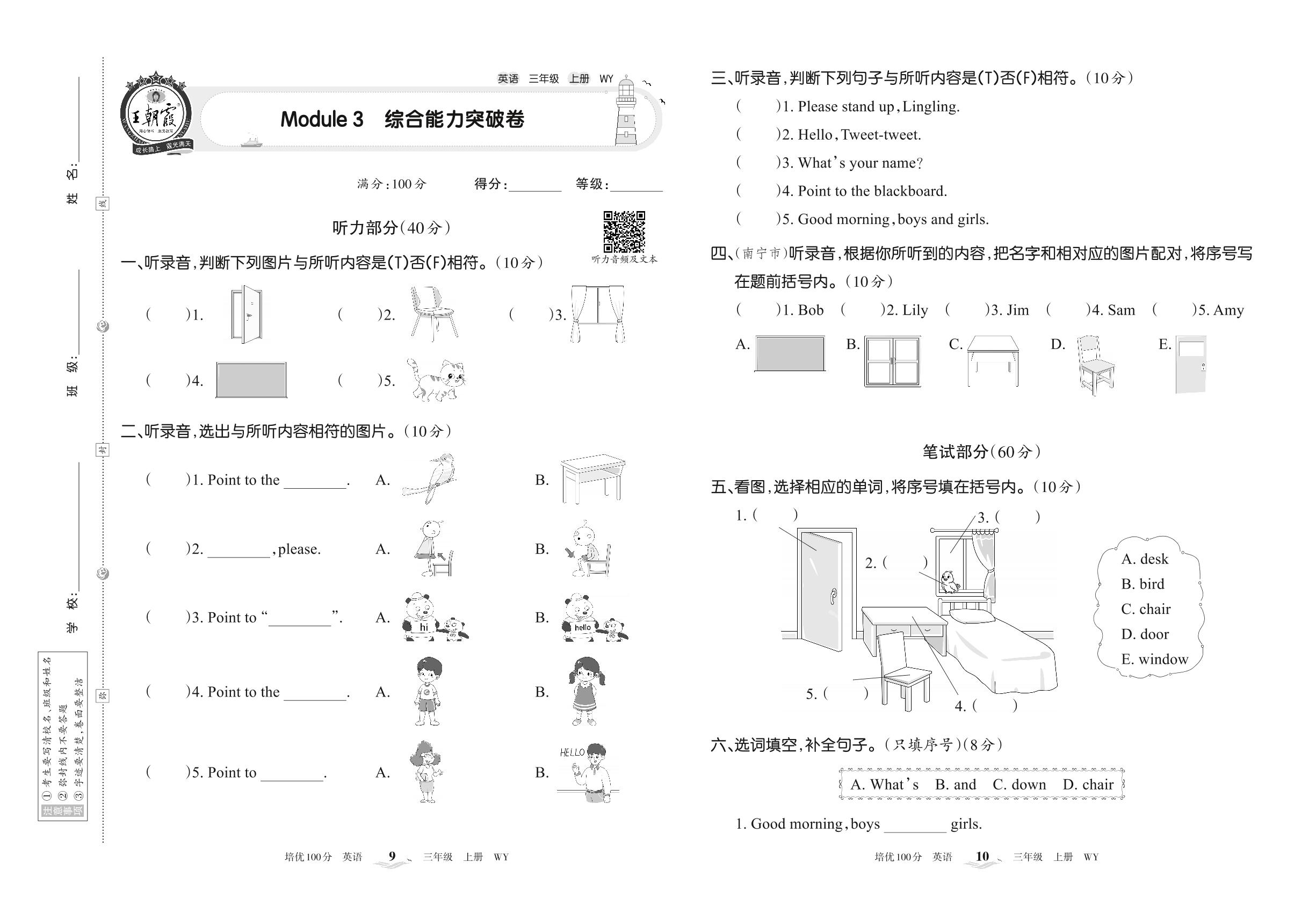 2022上册三年级英语外研版 Module 3 综合能力突破卷