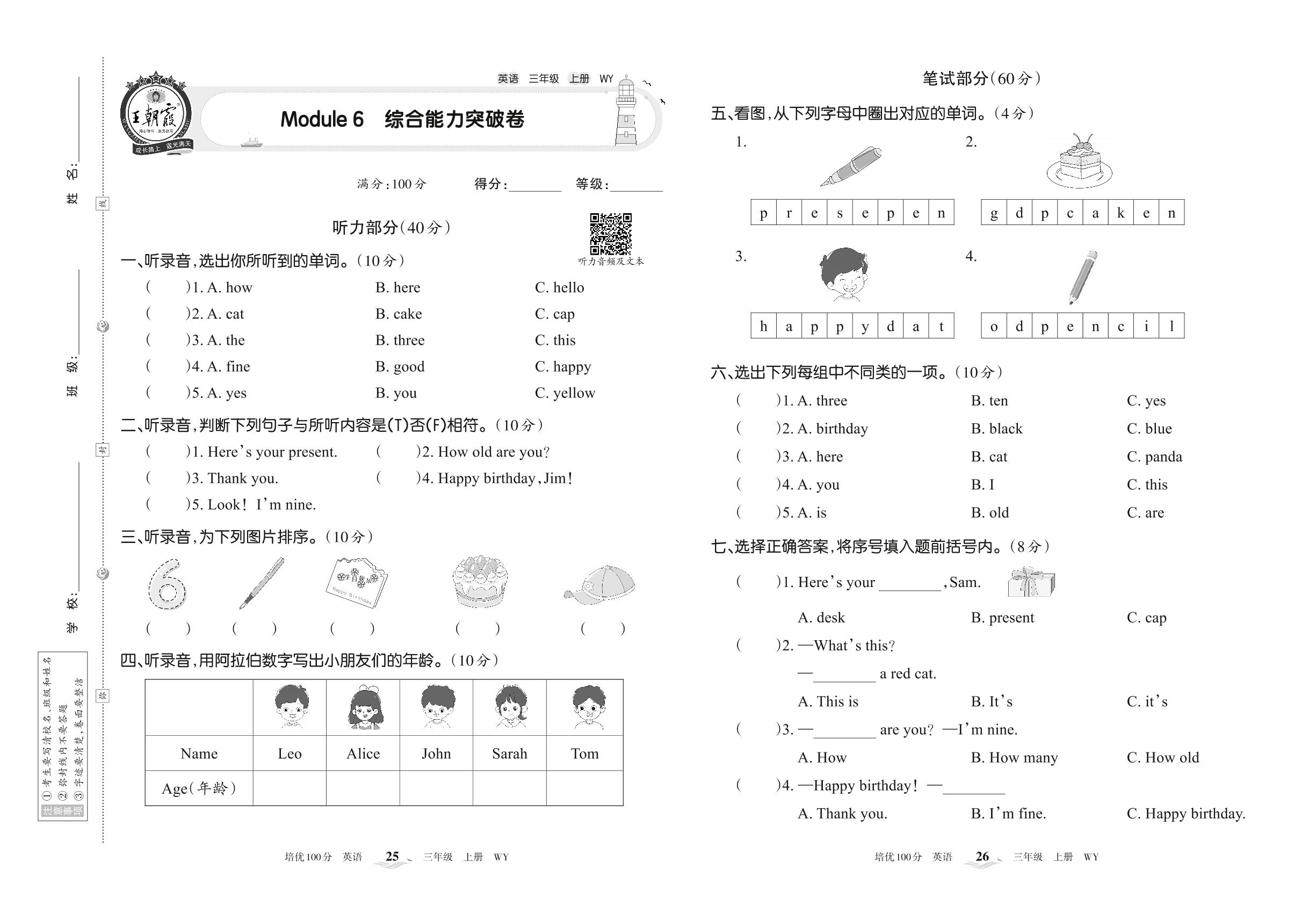 2022上册三年级英语外研版 Module 6 综合能力突破卷
