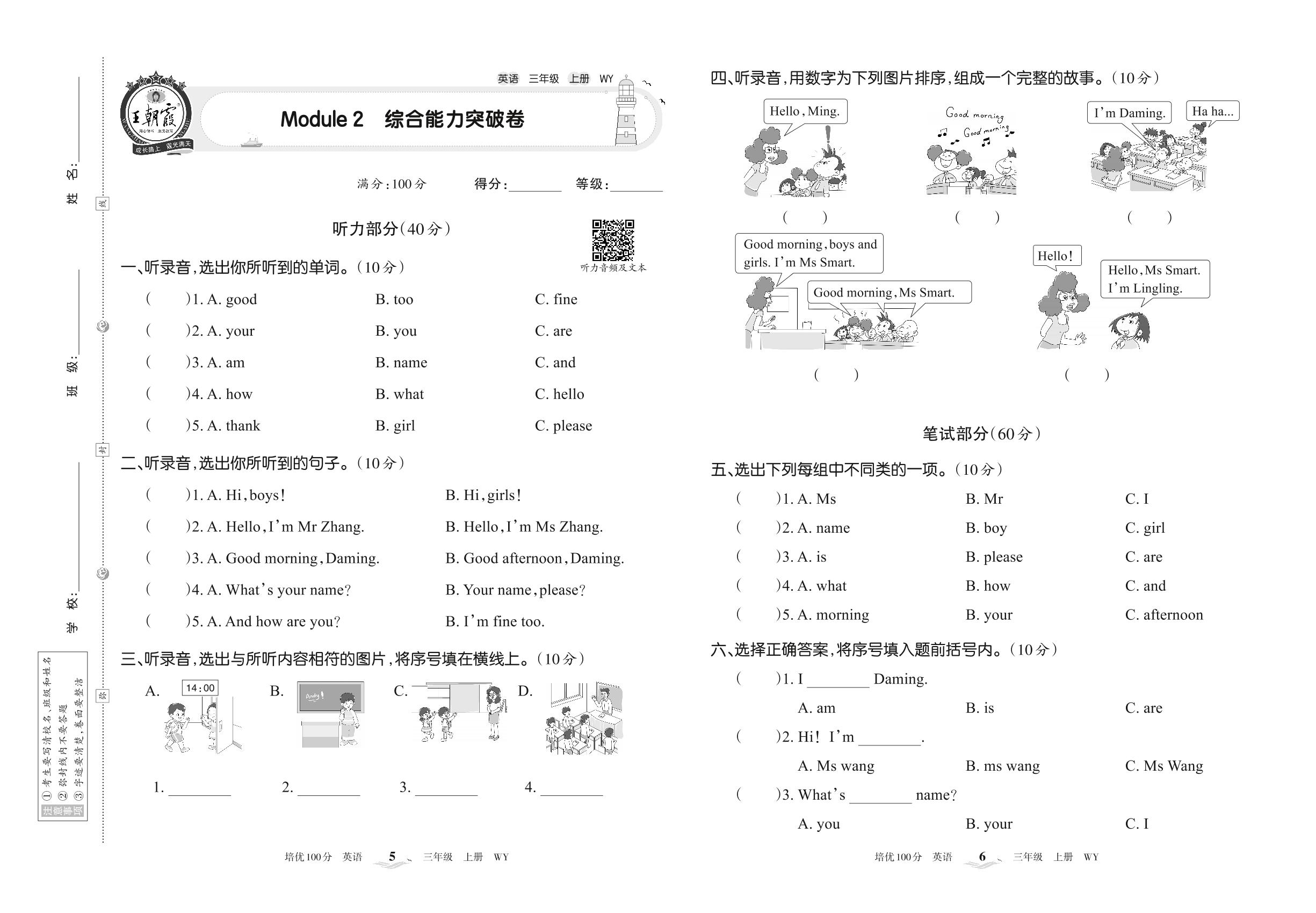2022上册三年级英语外研版 Module 2 综合能力突破卷