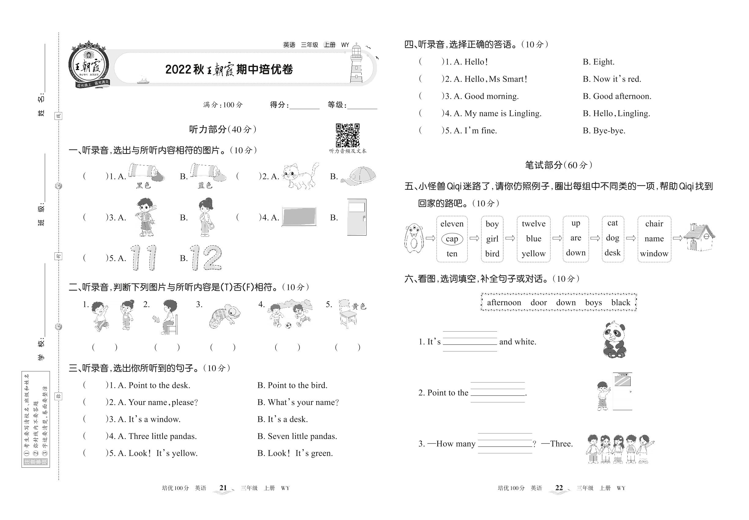 2022上册三年级英语外研版 2022秋王朝霞期中培优卷