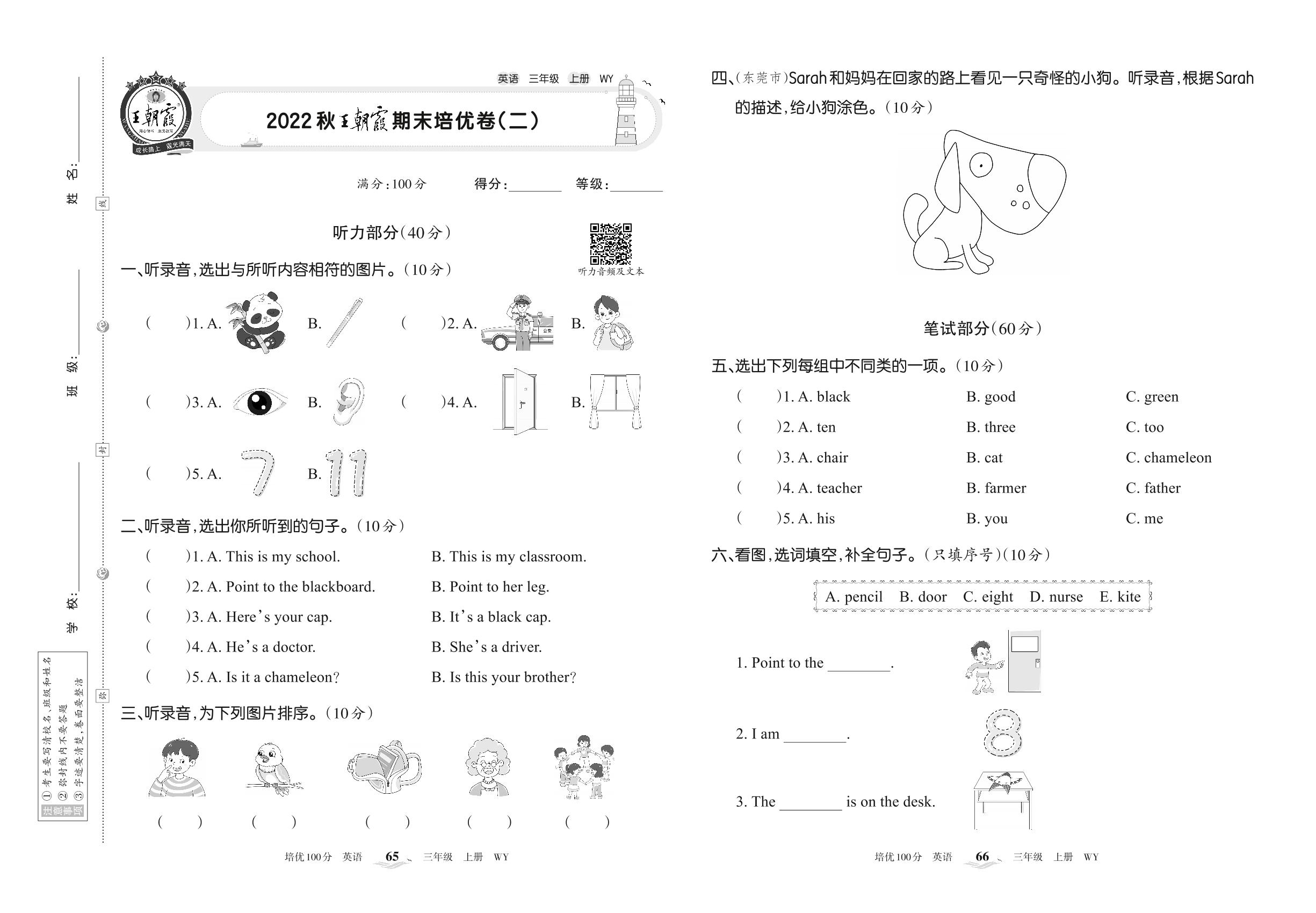 2022上册三年级英语外研版 2022秋王朝霞期末培优卷(二)