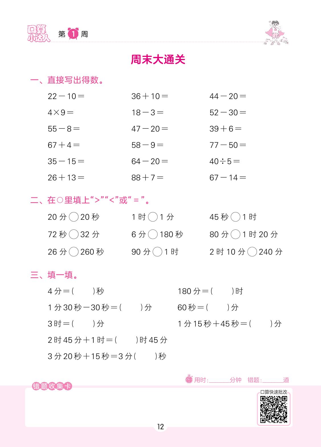 2022上册三年级数学人教版 第1周 周末大通关