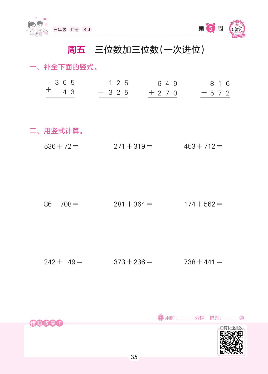 2022上册三年级数学人教版 第5周 周五