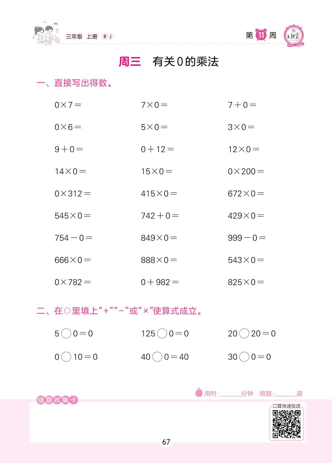 2022上册三年级数学人教版 第11周 周三