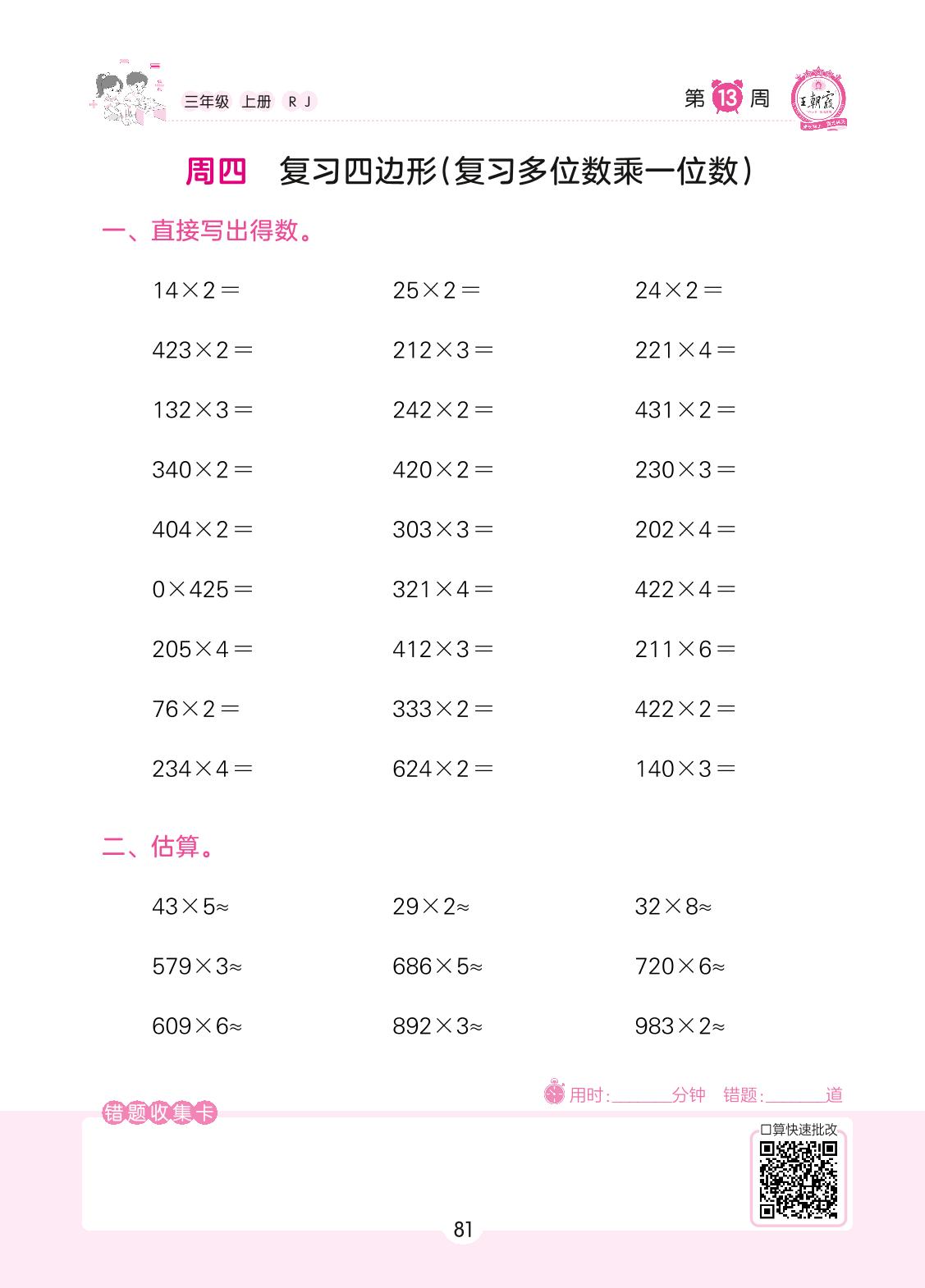 2022上册三年级数学人教版 第13周 周四