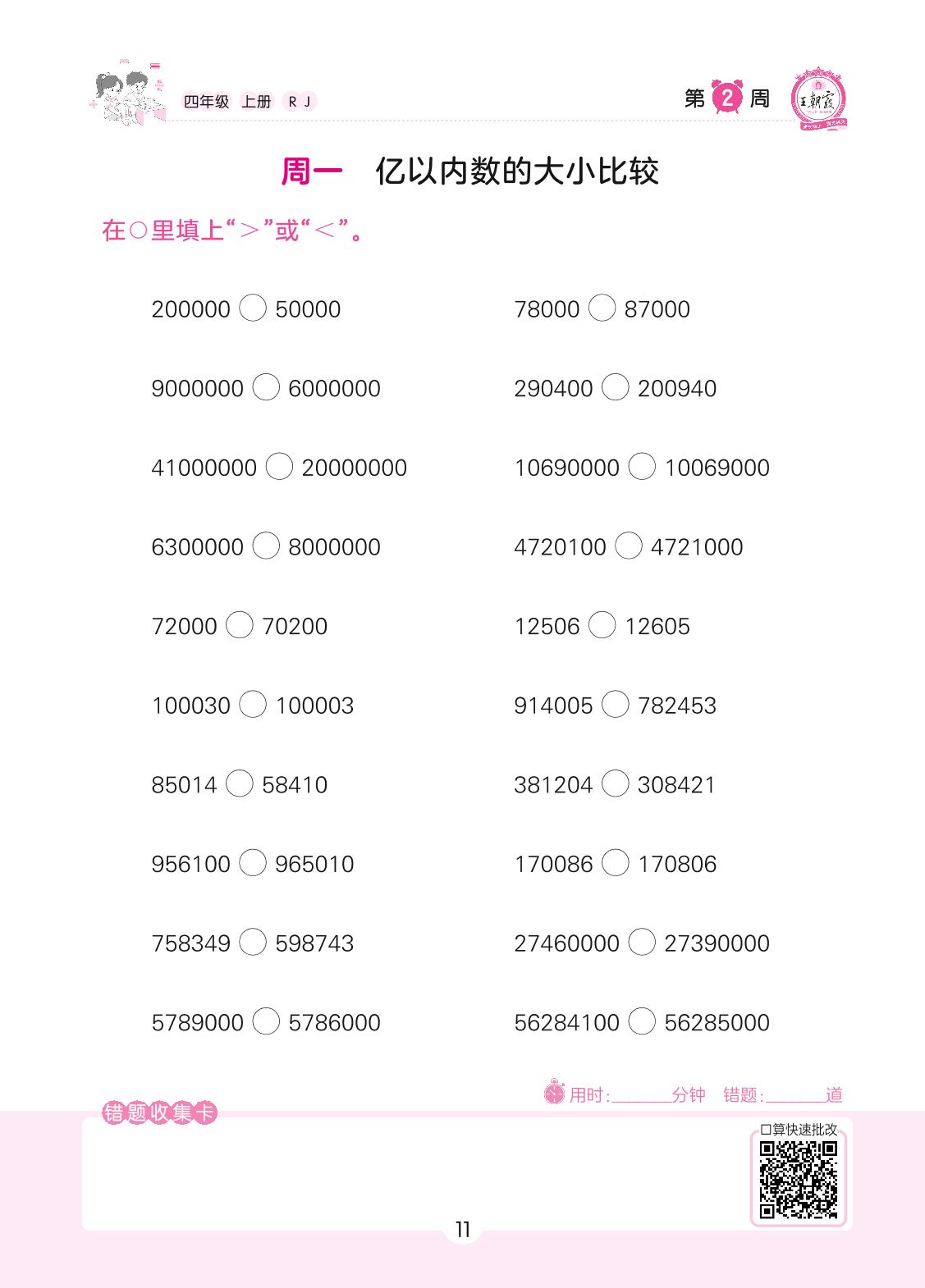 2022上册四年级数学人教版 第2周 周一