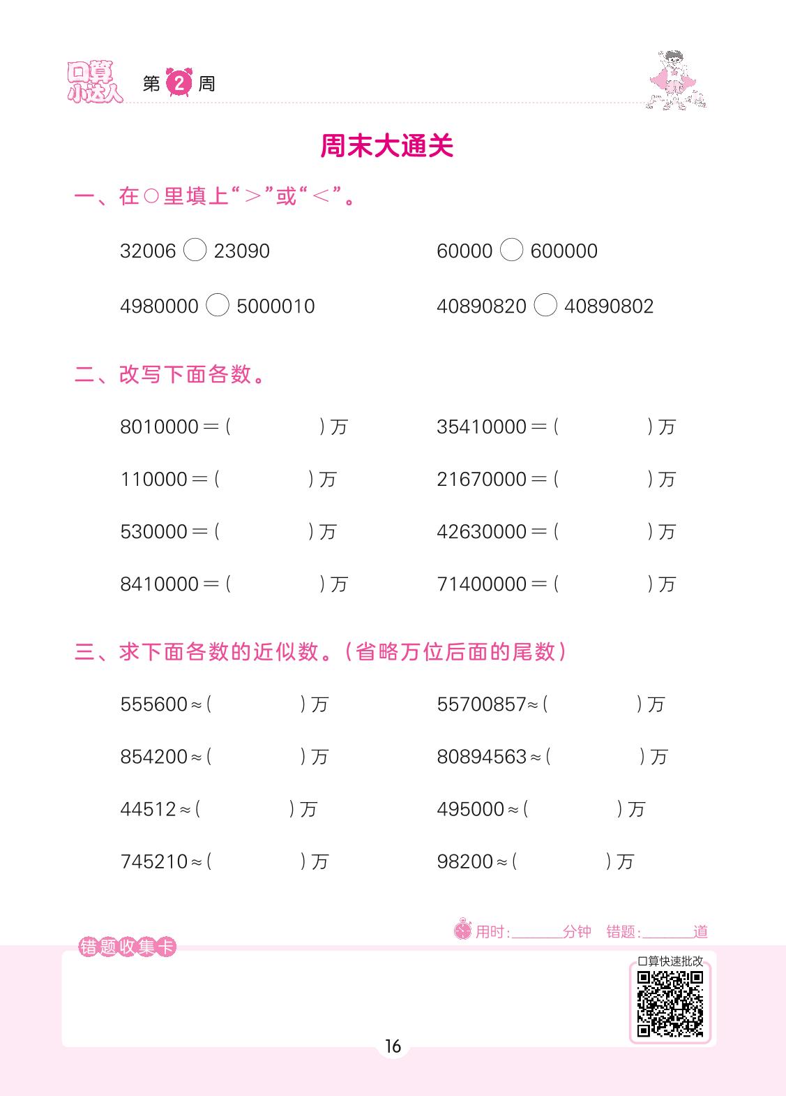 2022上册四年级数学人教版 第2周 周末大通关