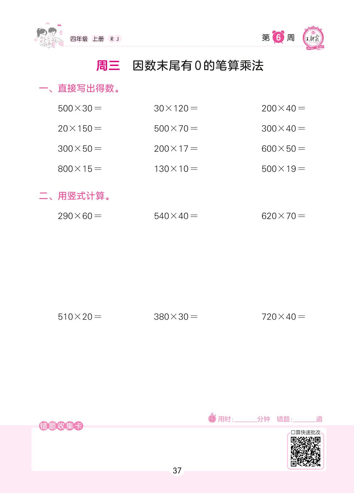 2022上册四年级数学人教版 第6周 周三
