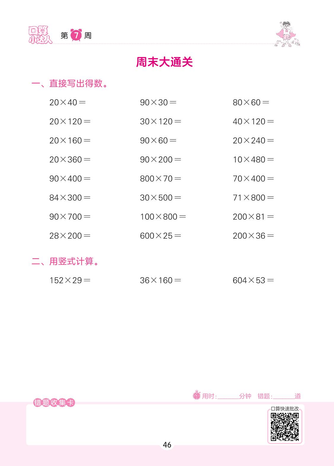 2022上册四年级数学人教版 第7周 周末大通关