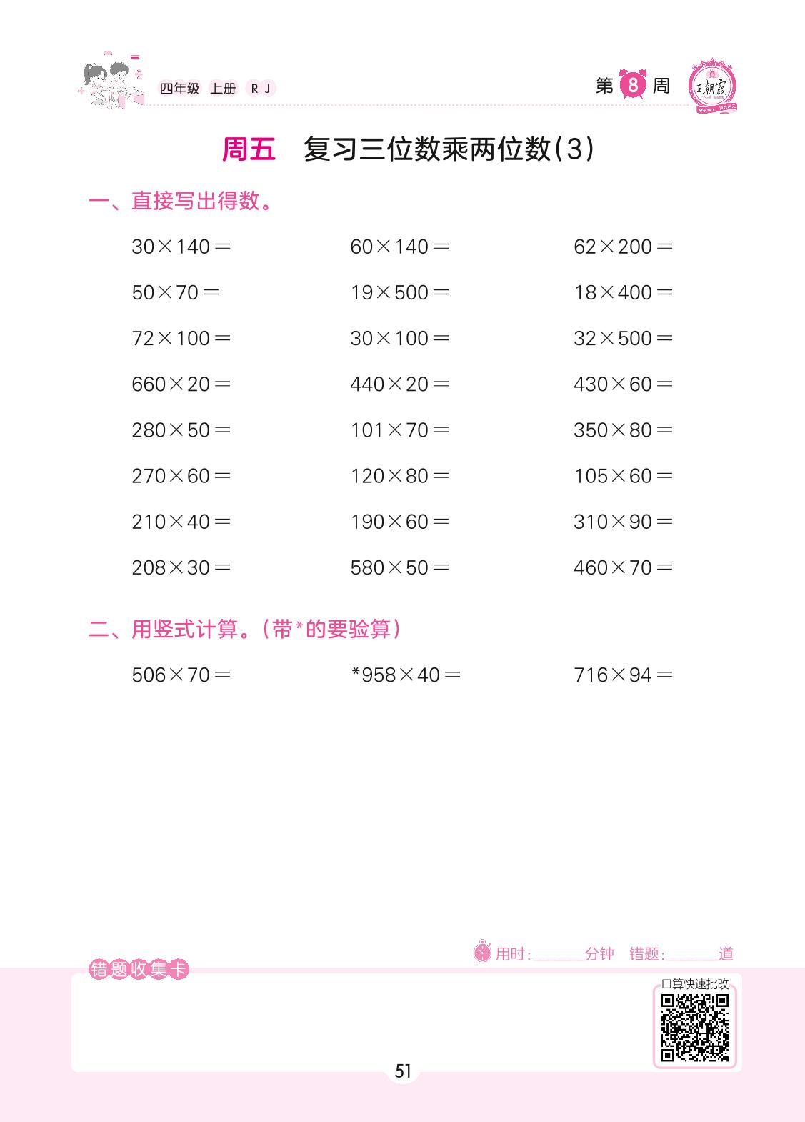 2022上册四年级数学人教版 第8周 周五