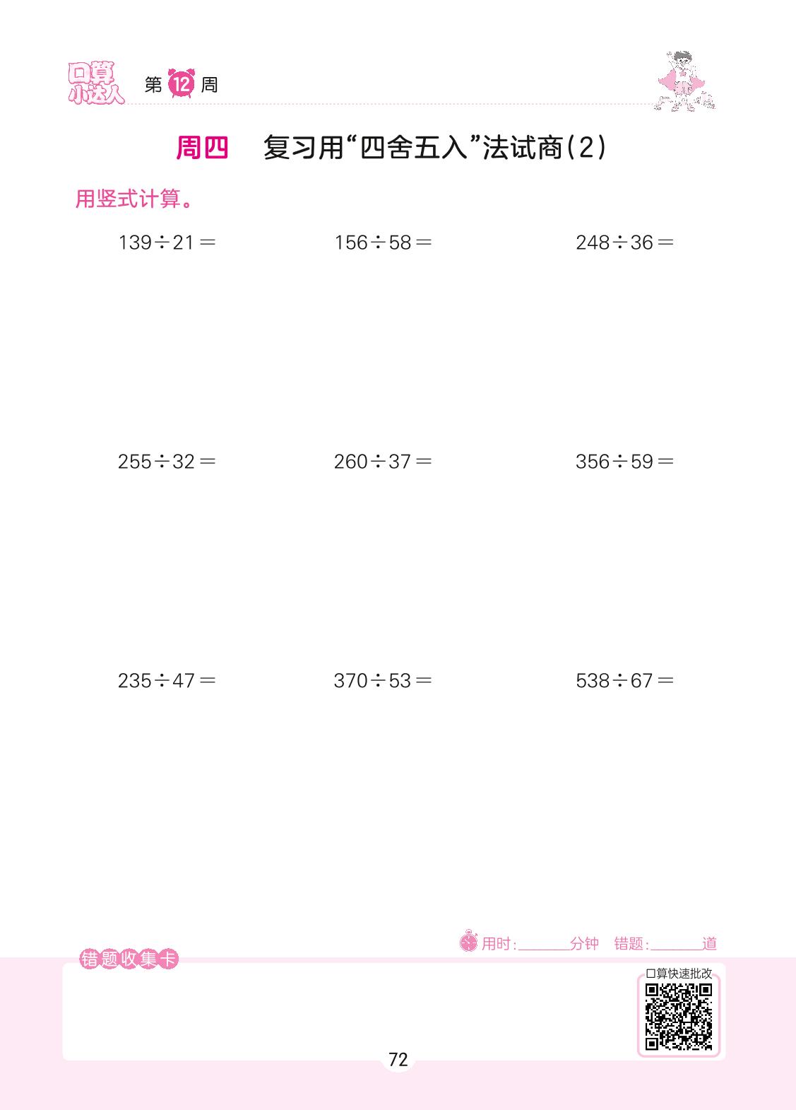 2022上册四年级数学人教版 第12周 周四
