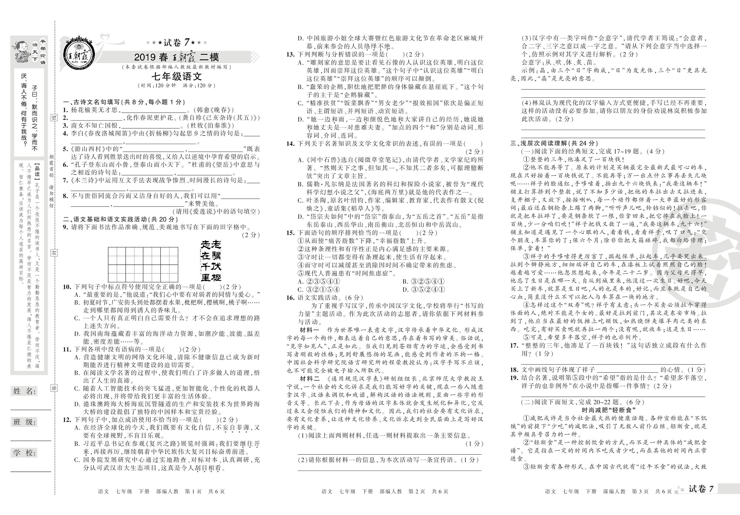 王朝霞期末模拟卷七年级下册语文(人教版)_R21080251839【7】