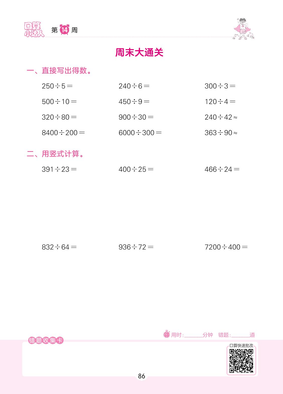 2022上册四年级数学人教版 第14周 周末大通关