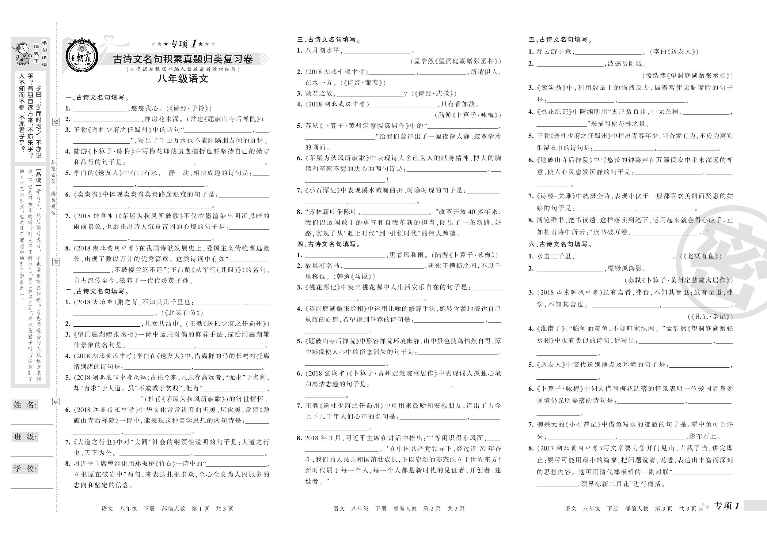 王朝霞期末专项卷——古诗文名句积累、语文基础知识(一)真题归类复习卷八年级下册语文(人教版)_R21080251903【0】
