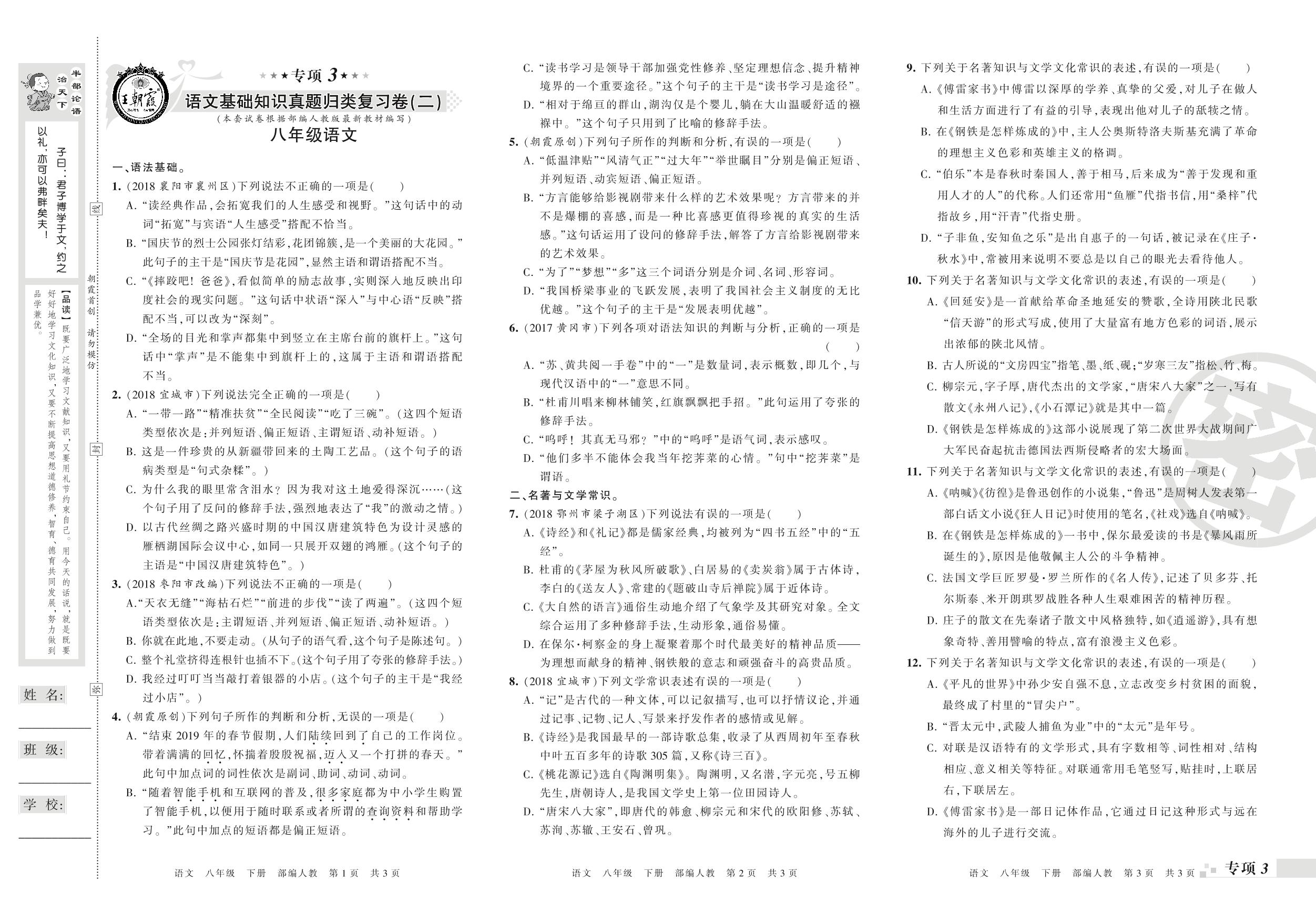 王朝霞期末专项卷——语文基础知识(二)(三)真题归类复习卷八年级下册语文(人教版)_R21080251910【0】