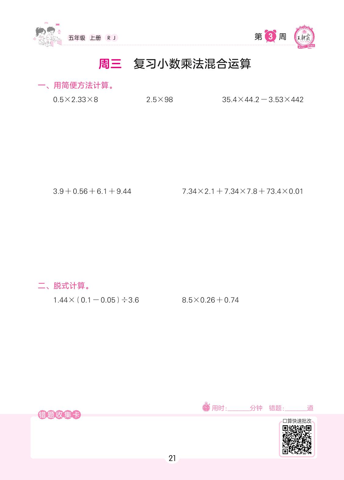 2022上册五年级数学人教版 第3周 周三