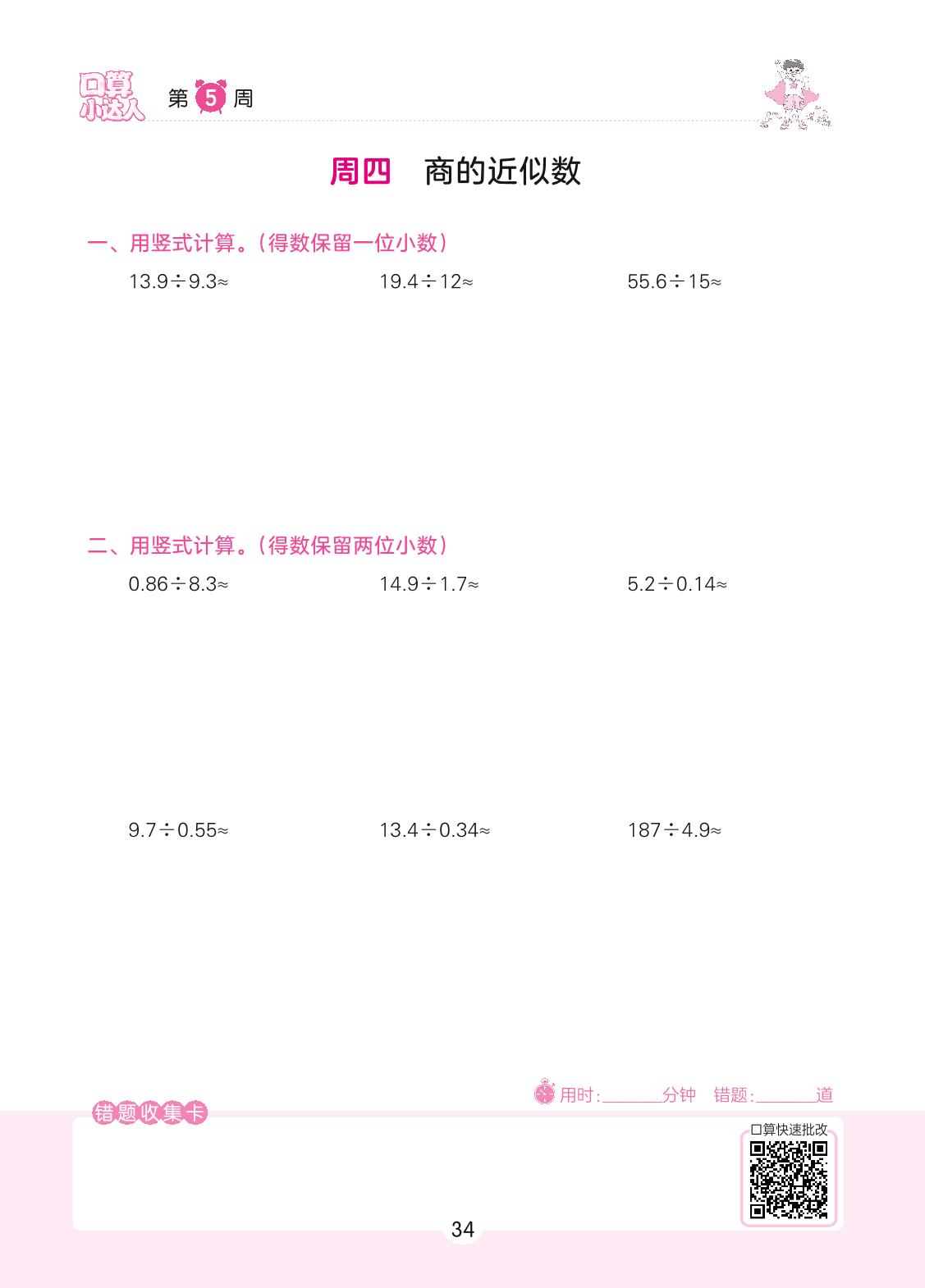 2022上册五年级数学人教版 第5周 周四